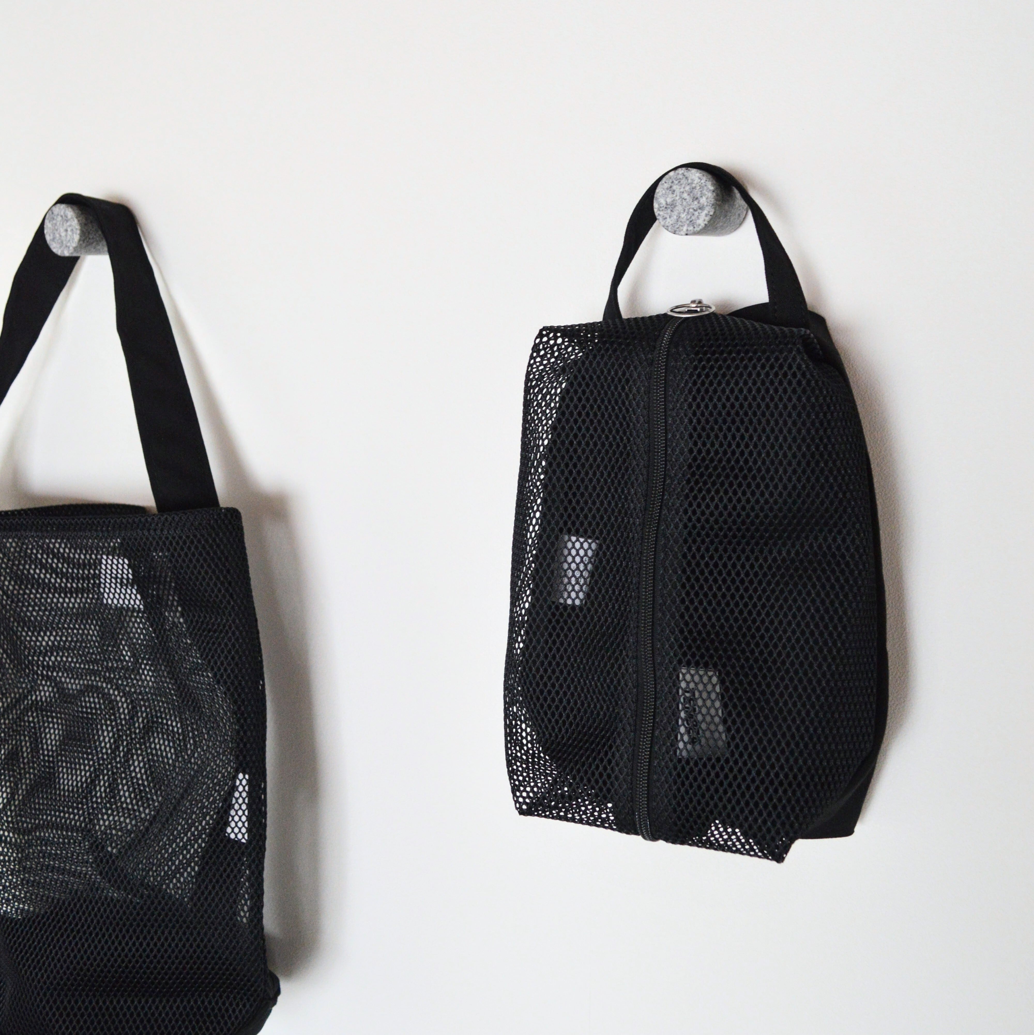 水にも強い丈夫なナイロンメッシュが使用されているので、アウトドアや旅行にも。