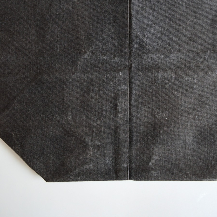 帆布生地をコーヒーや紅茶、鉄媒染によって染色し、その後蝋引きの加工を施すことで耐久性を保つとともに、クラフト紙のような質感と経年変化による風合いの良さを生み出されています。