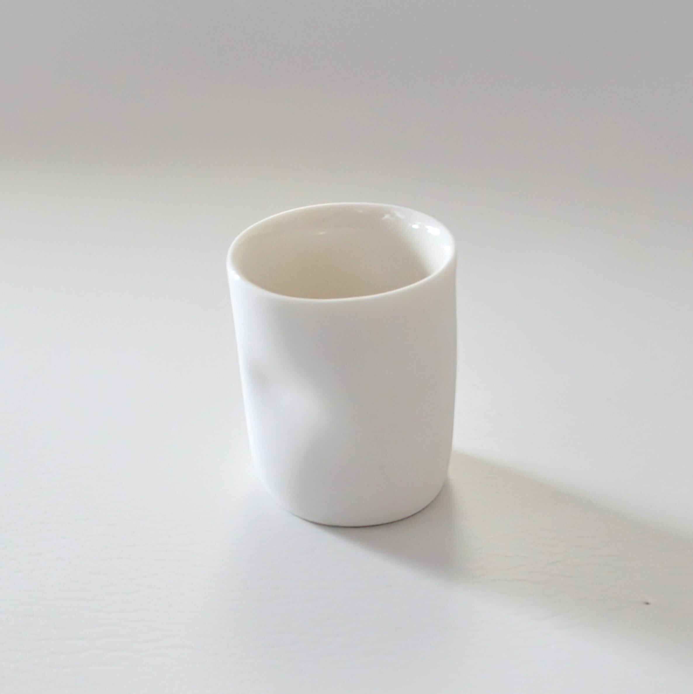 『MELT CUP』は焼成する前にひとつひとつ手作業で歪みをつけて形を作ることで、まるで溶け出しているような表情のあるカップ。
