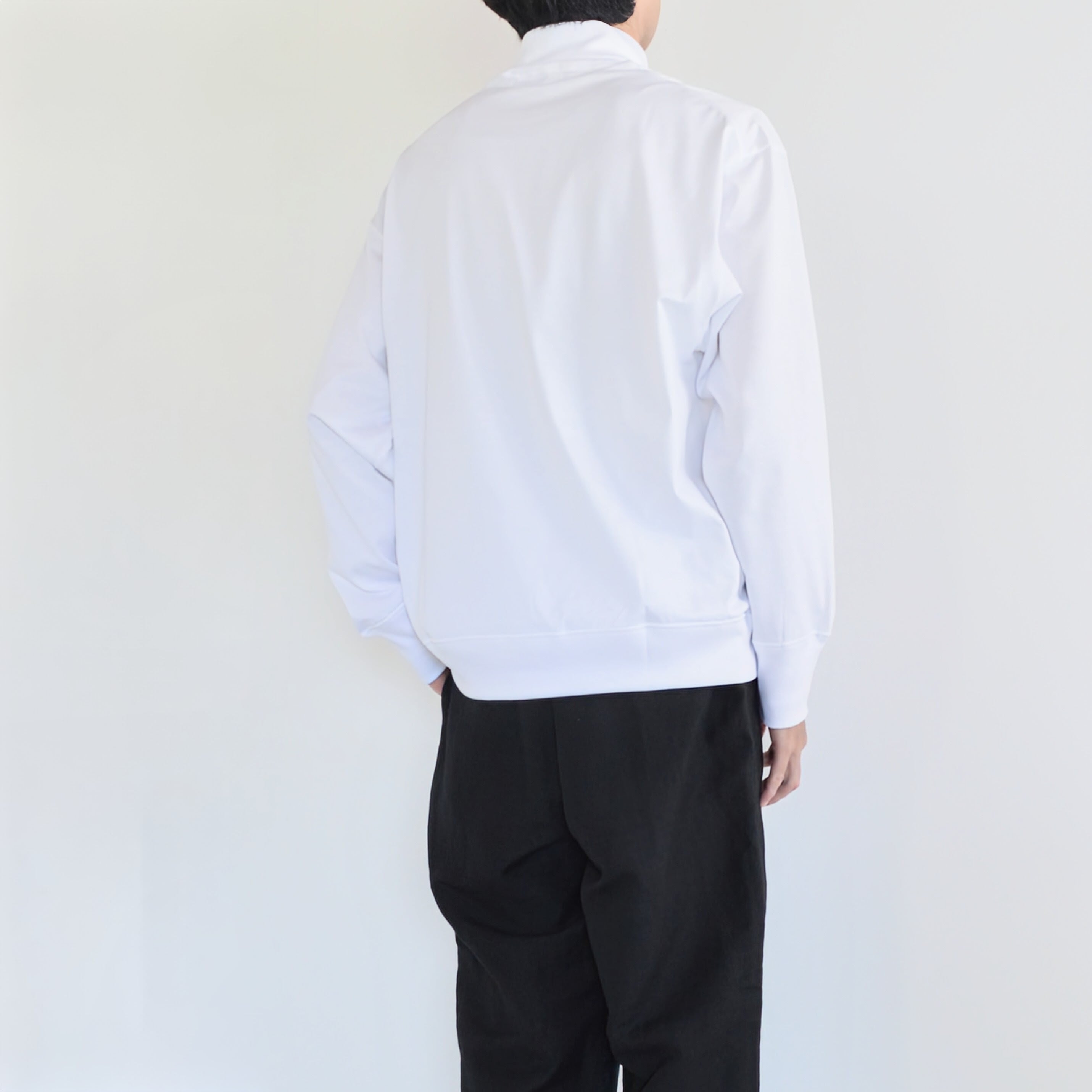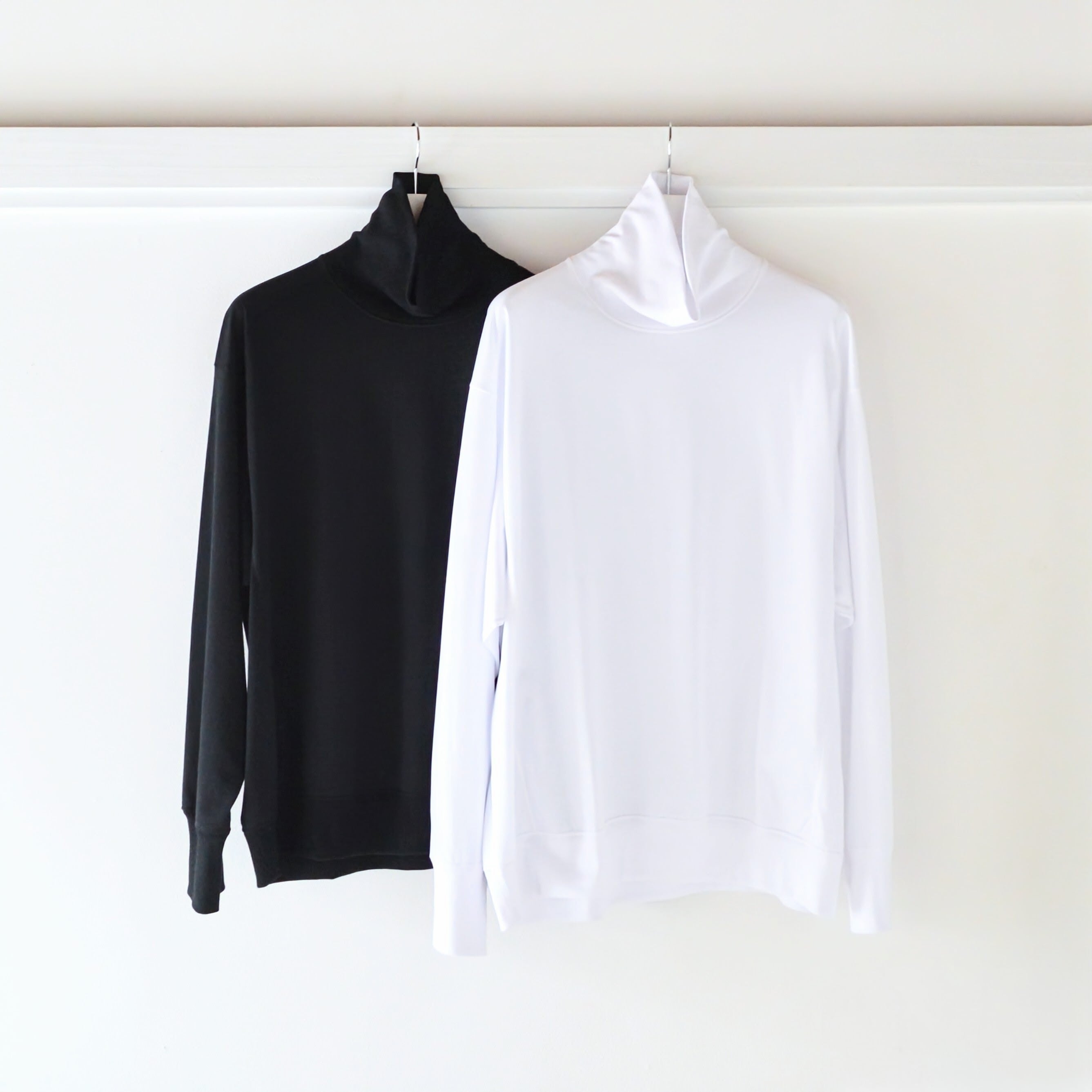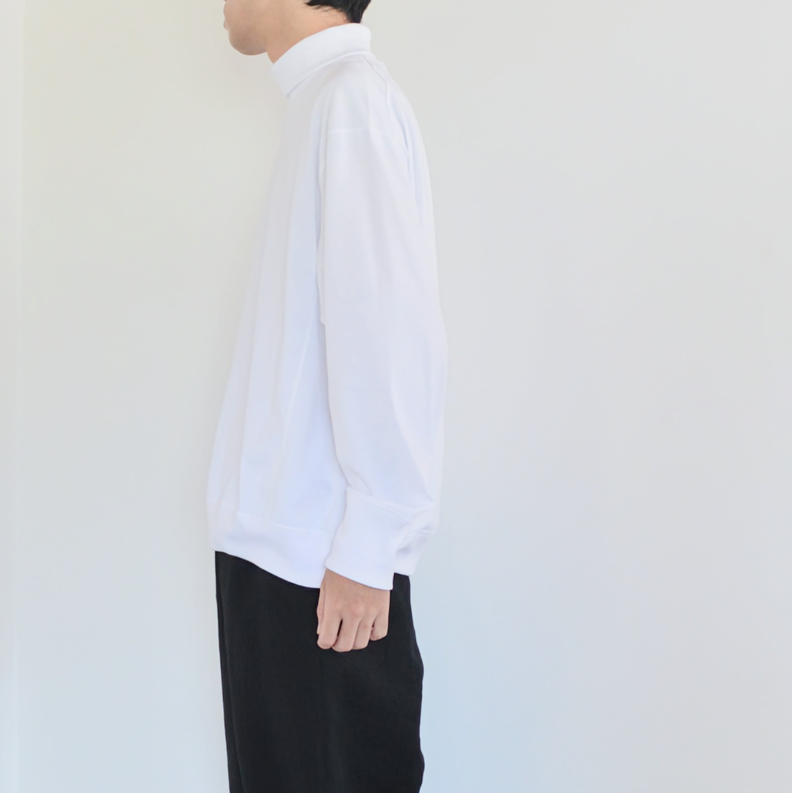 Itheの新作となるタートルネックカットソー。このモデルは定番のスウェットのパターンを用いてより汎用性の高いものにし、一枚でももちろん、シャツのインナーなどにもお使いいただけるようになりました。