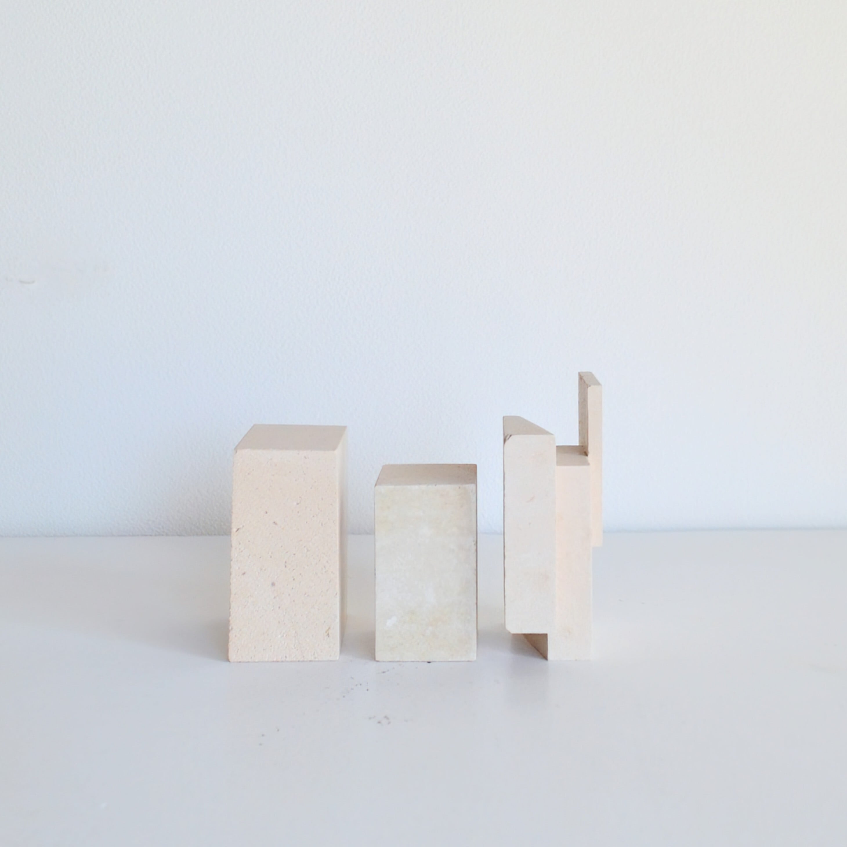 Wood mortar objectは、家具の制作過程に発生する木屑とモルタルを混ぜ合わせることで人肌のような色と石のような質感の素材を生み出し、それらを即興的な形状に固めることでオブジェクトをはじめ、キャンドルホルダーやプレートといった用途を想定したシリーズです。