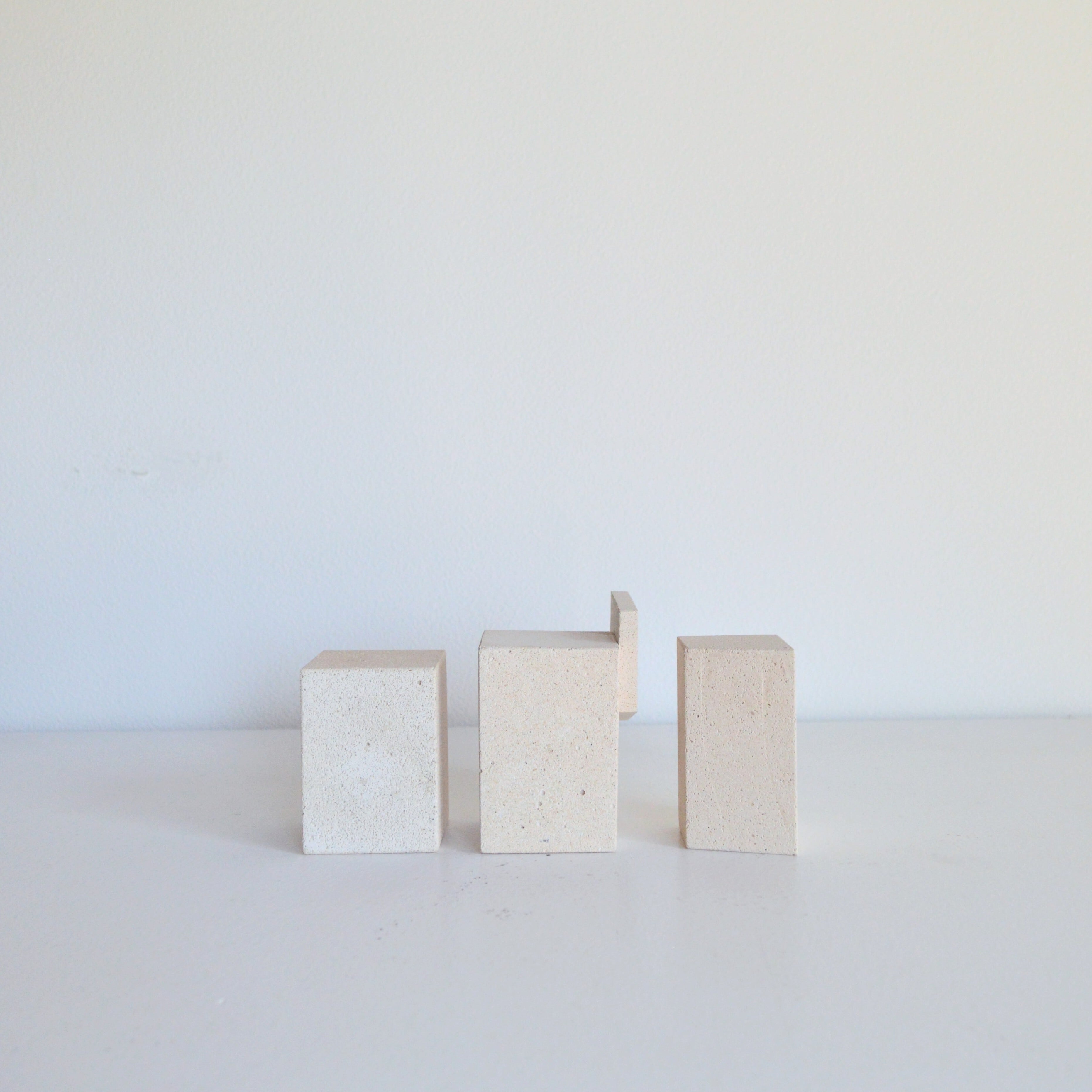 Wood mortar objectは、家具の制作過程に発生する木屑とモルタルを混ぜ合わせることで人肌のような色と石のような質感の素材を生み出し、それらを即興的な形状に固めることでオブジェクトをはじめ、キャンドルホルダーやプレートといった用途を想定したシリーズです。