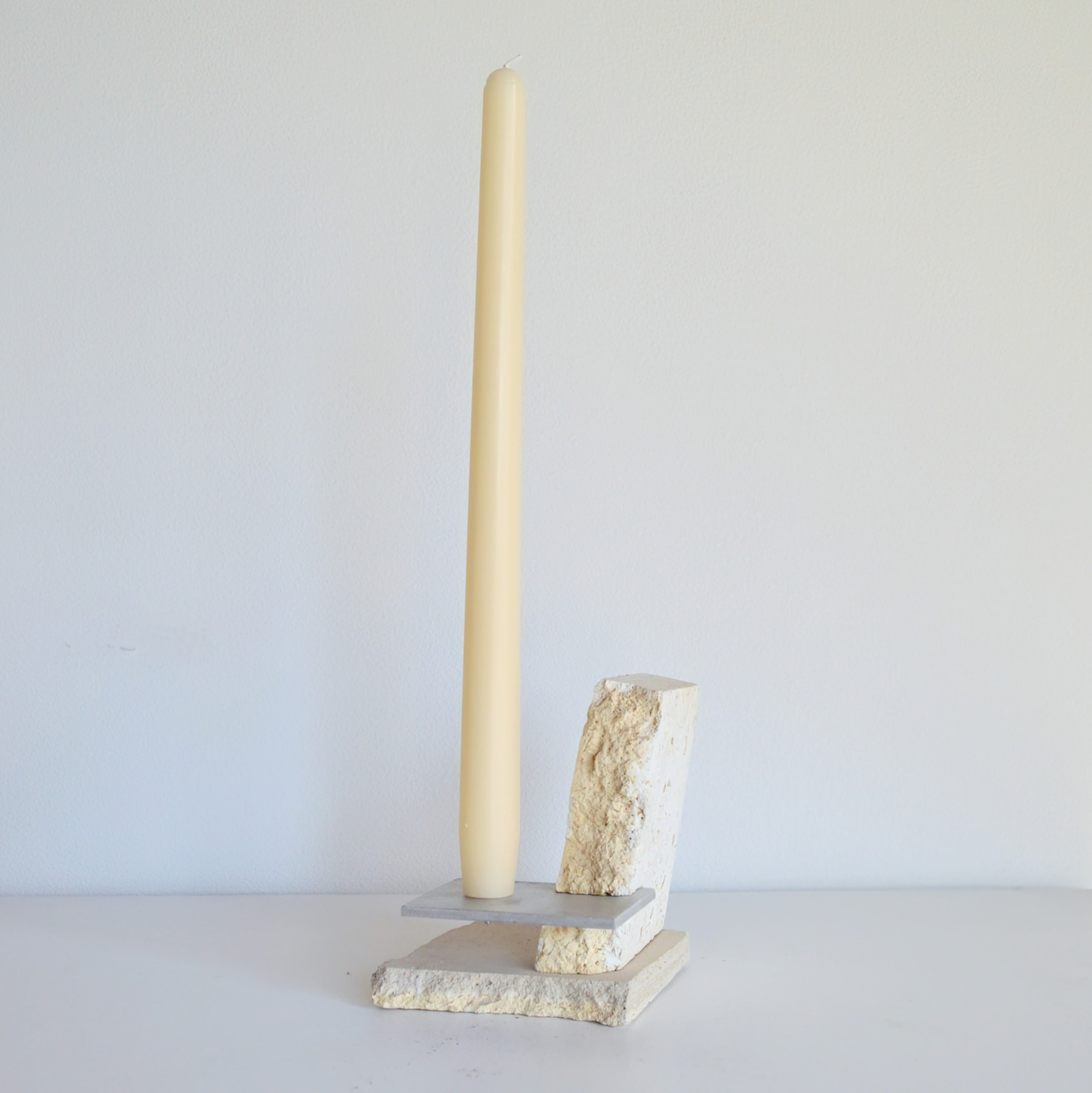キャンドルホルダーは予測不能な割れの面と規則的でフラットな面の両方が存在し、その不均質さゆえに影からは有機的で複雑なグラデーションが生まれます。