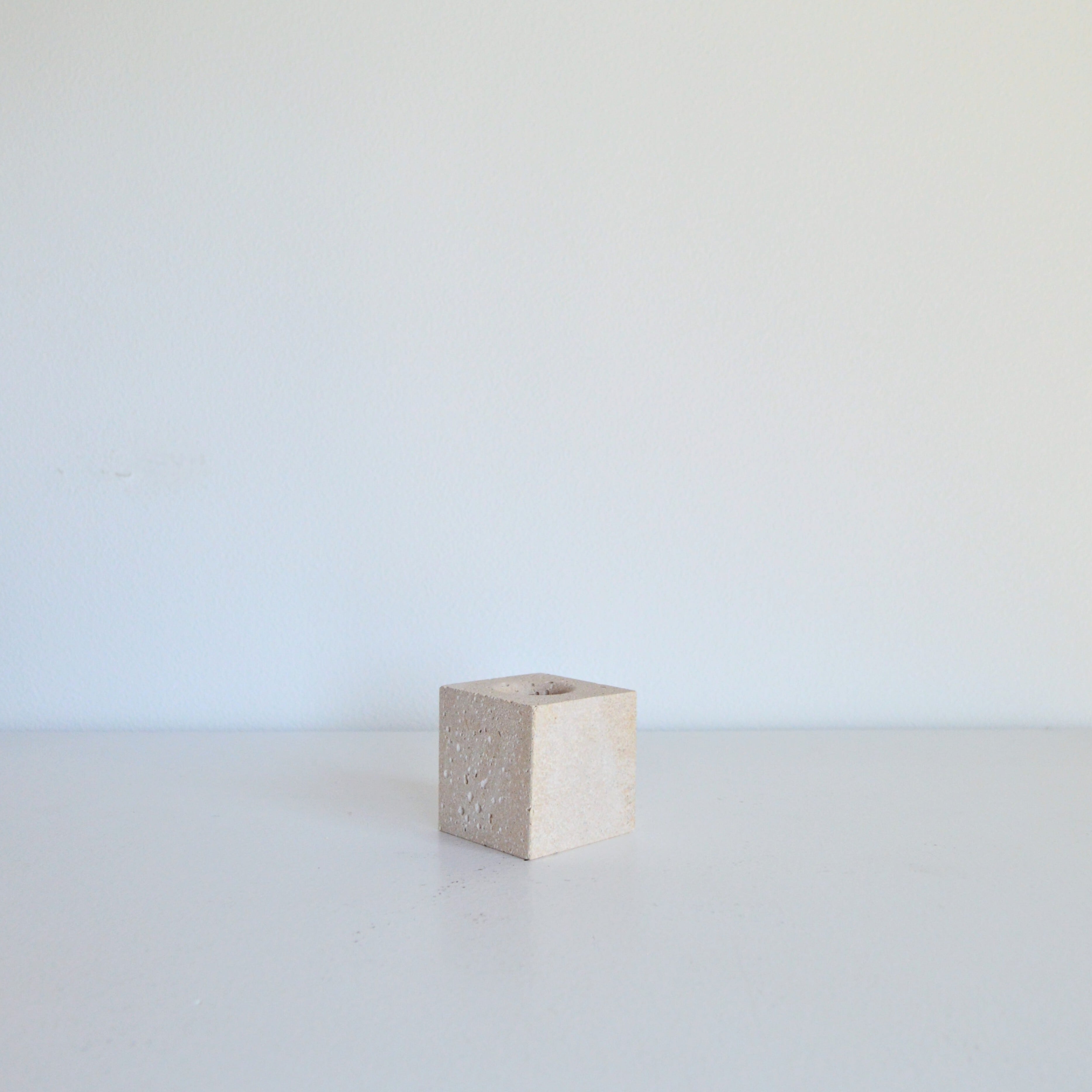 キャンドルホルダーは予測不能な割れの面と規則的でフラットな面の両方が存在し、その不均質さゆえに影からは有機的で複雑なグラデーションが生まれます。