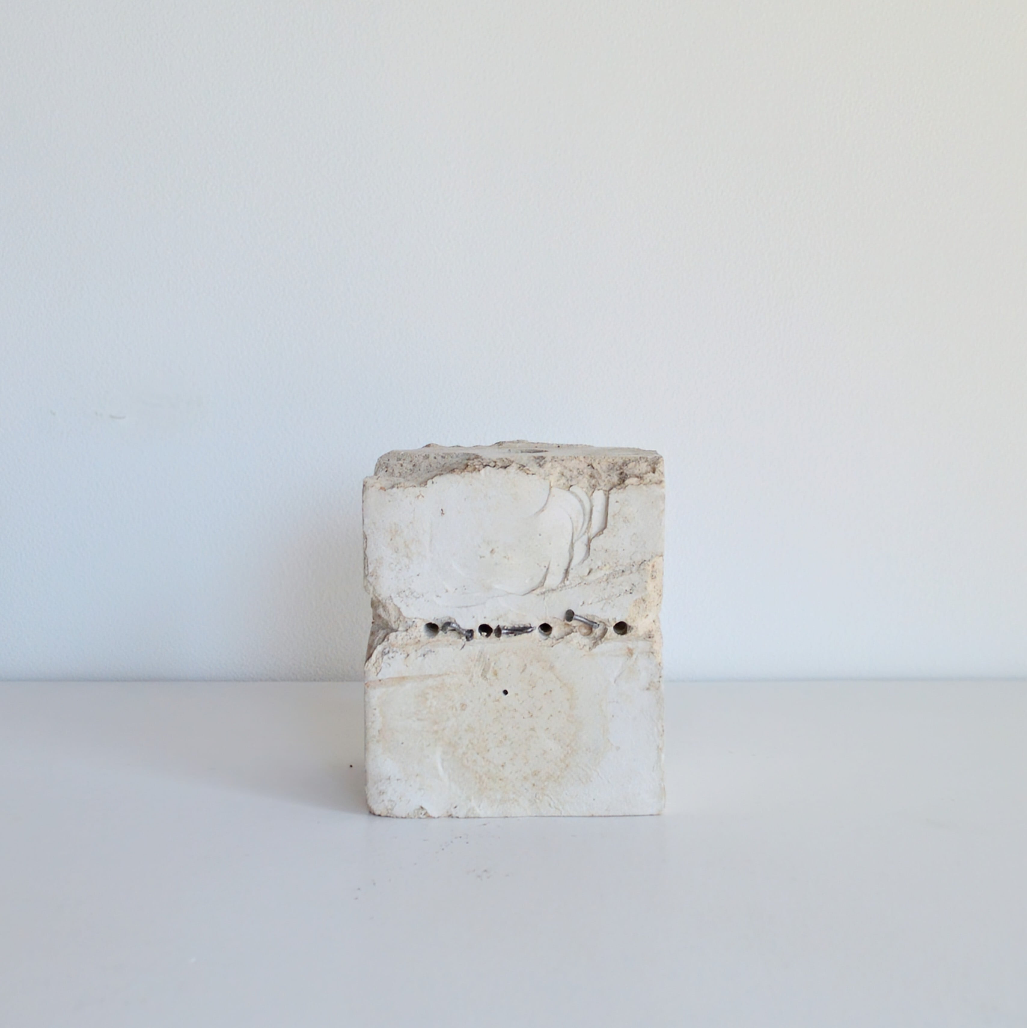 キャンドルホルダーは予測不能な割れの面と規則的でフラットな面の両方が存在し、その不均質さゆえに影からは有機的で複雑なグラデーションが生まれます。
