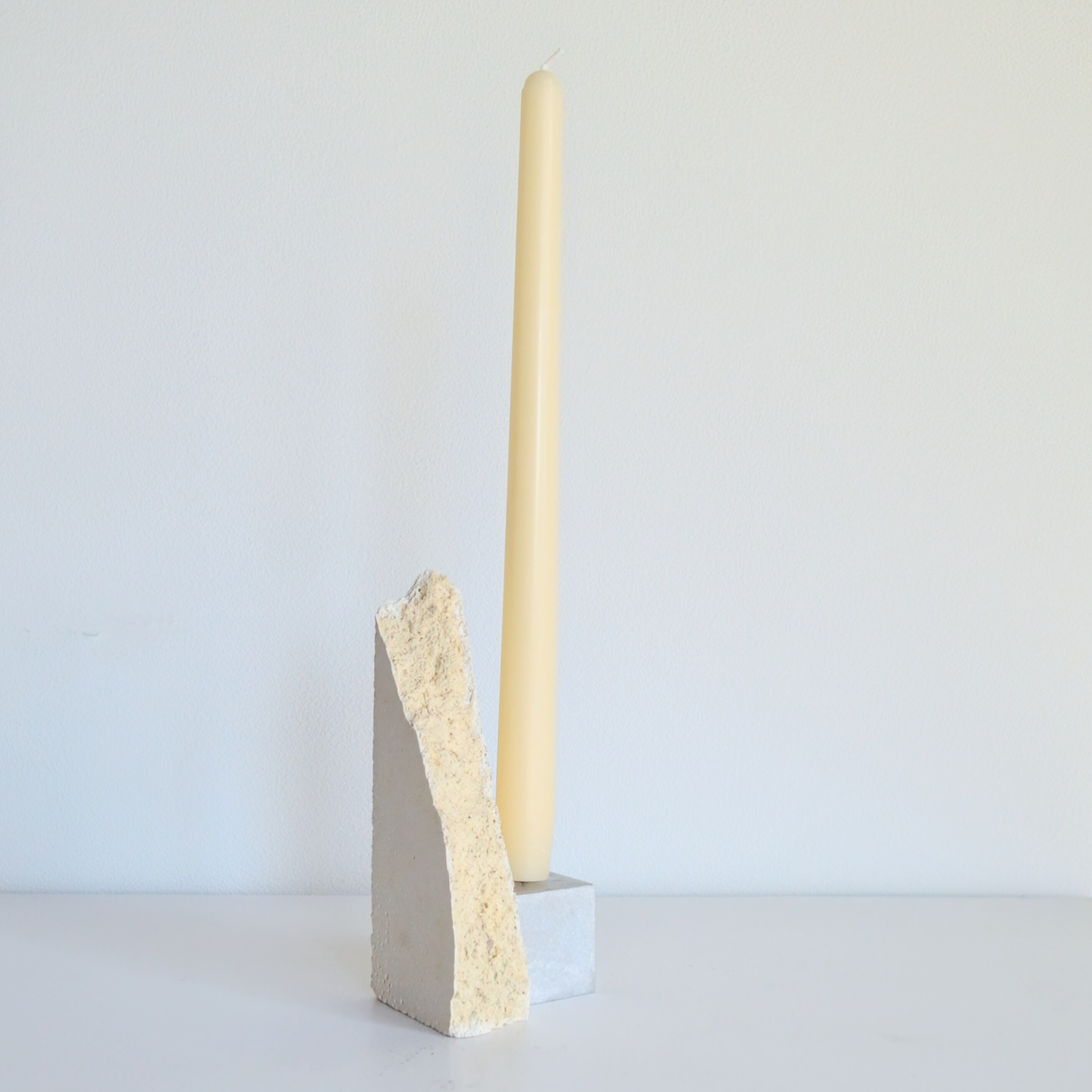 キャンドルホルダーは予測不能な割れの面と規則的でフラットな面の両方が存在し、その不均質さゆえに影からは有機的で複雑なグラデーションが生まれます。