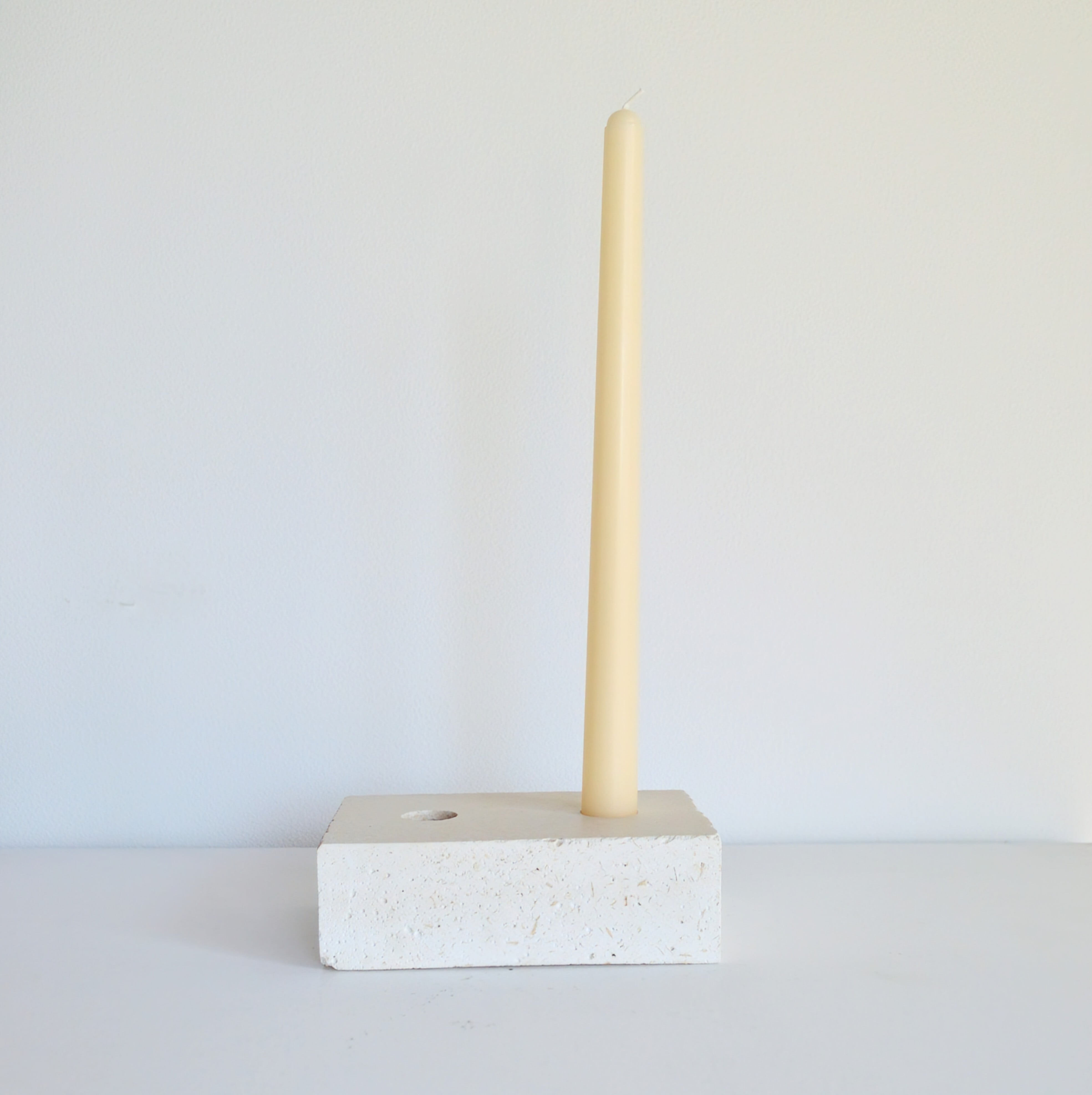 キャンドルホルダーは予測不能な割れの面と規則的でフラットな面の両方が存在し、その不均質さゆえに影からは有機的で複雑なグラデーションが生まれます。