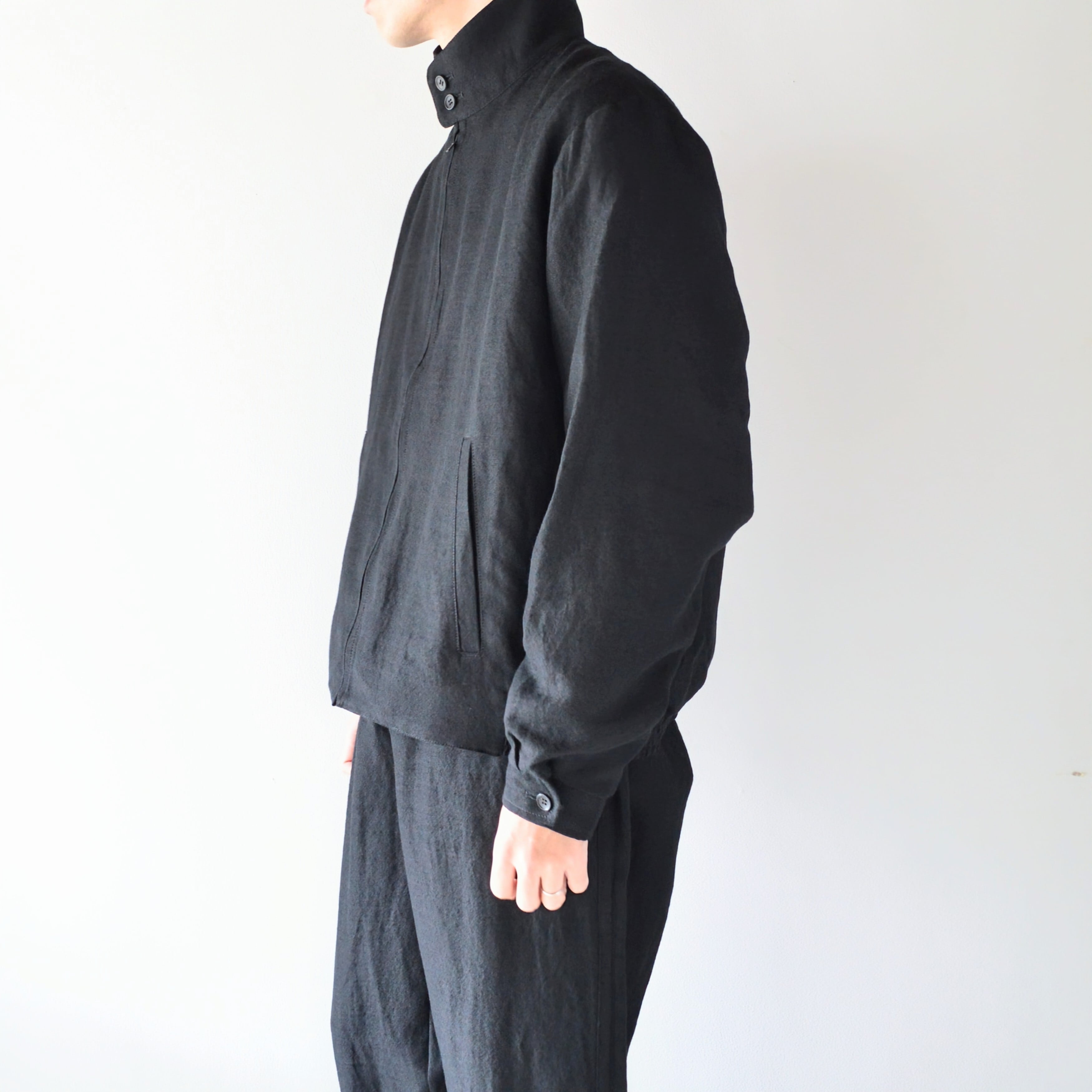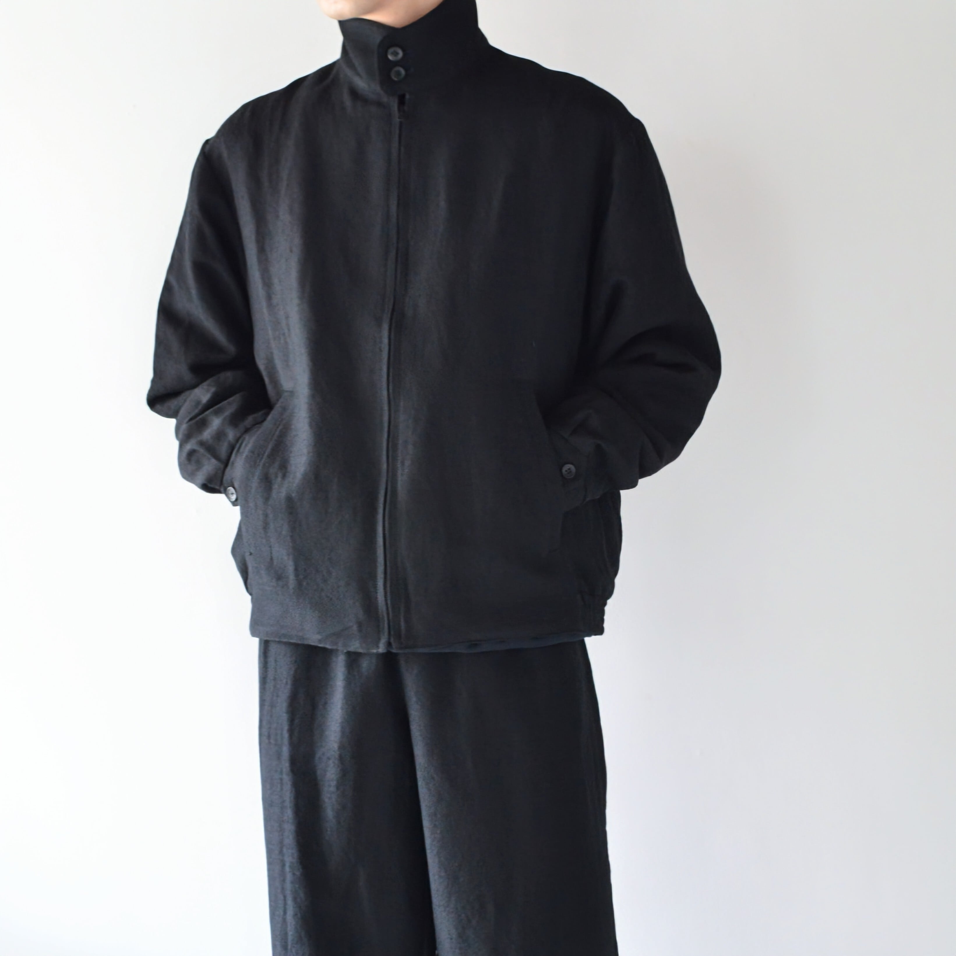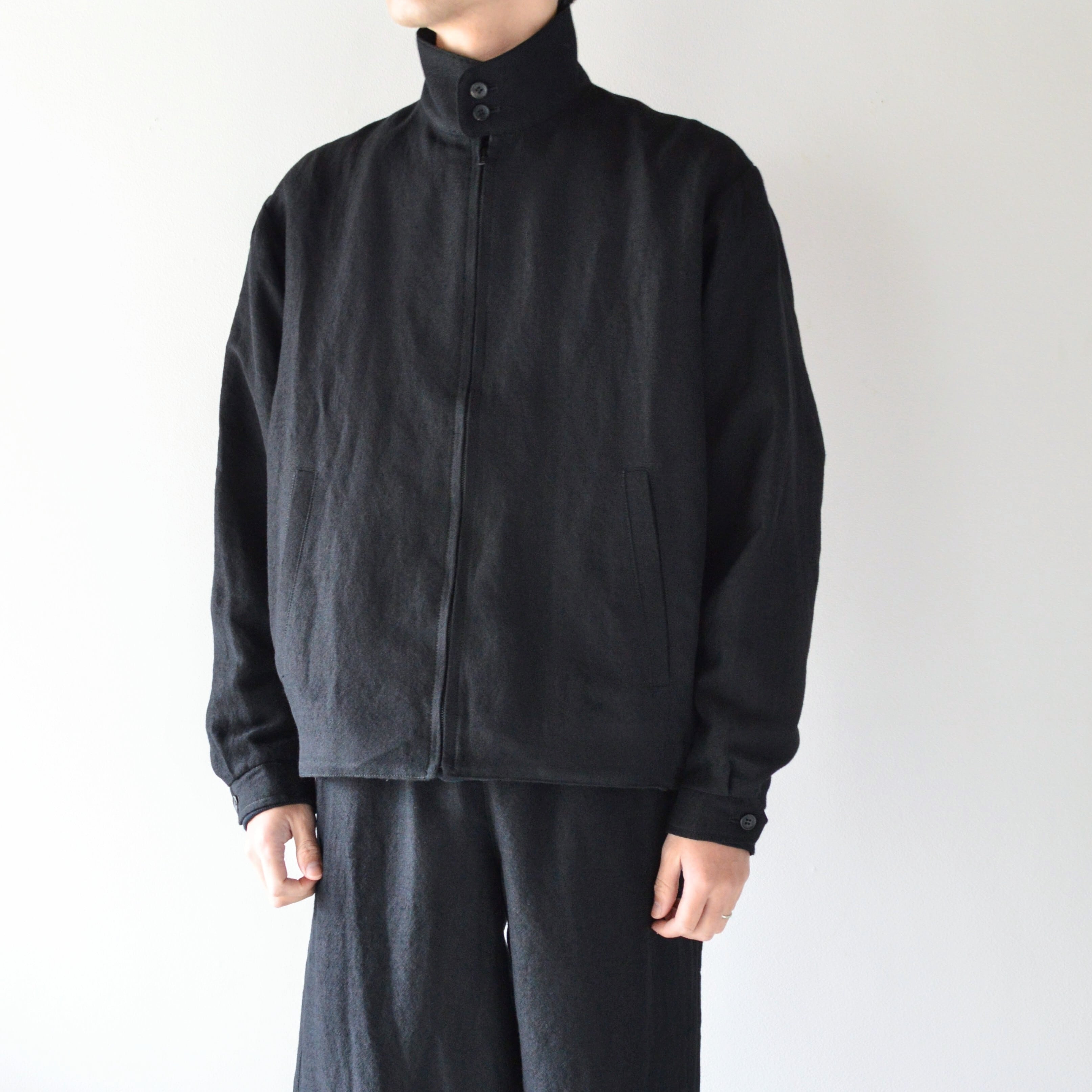 ウールにみられる暖かみのある毛足とリネン独特の荒々しい風合いが混ざり合い、見るほどに奥行きが感じられます。近年続く暖冬をふまえて、ヘビーアウター1枚で暖を取るよりも重ね着によって細かく体温調節できるようなスタイルを意識しています。