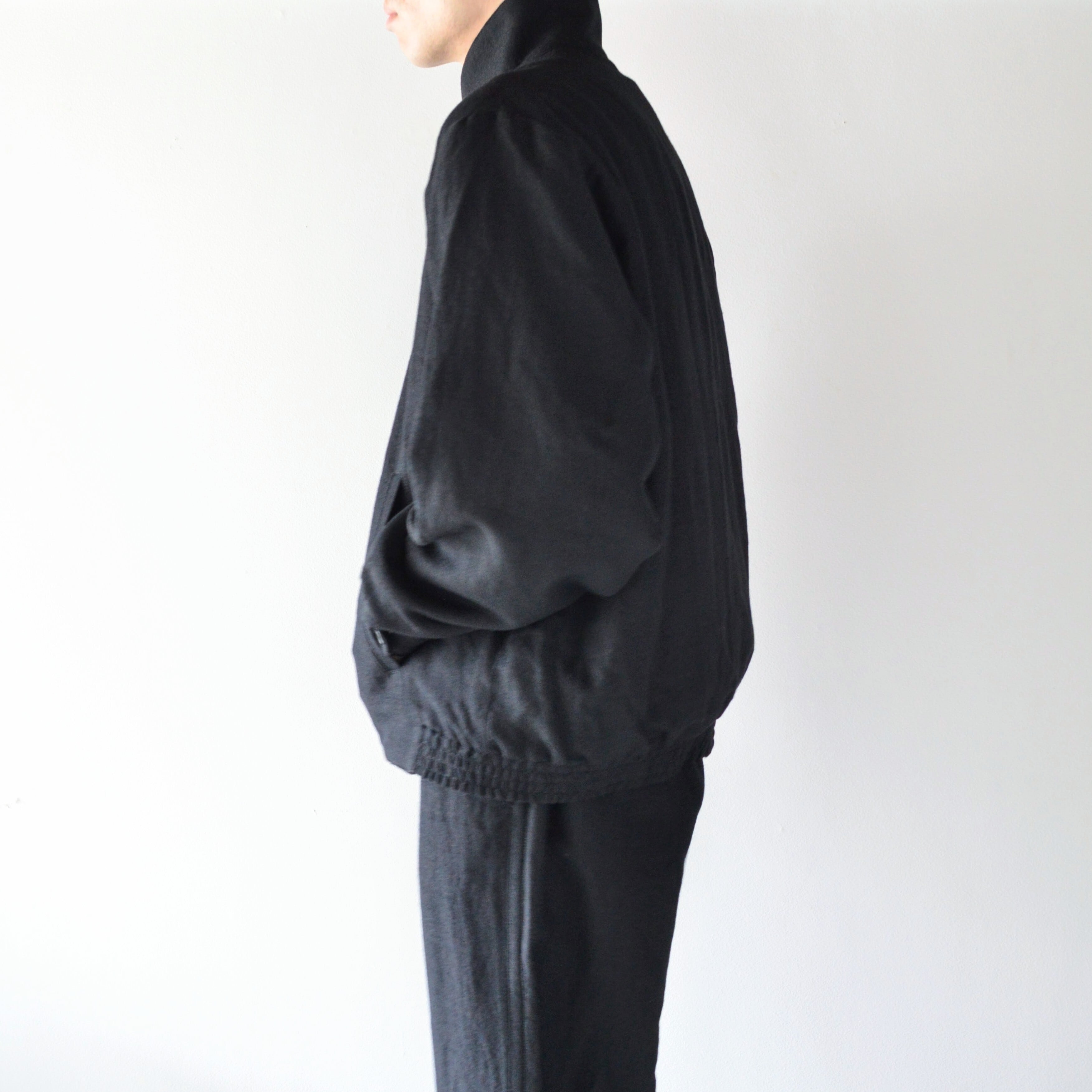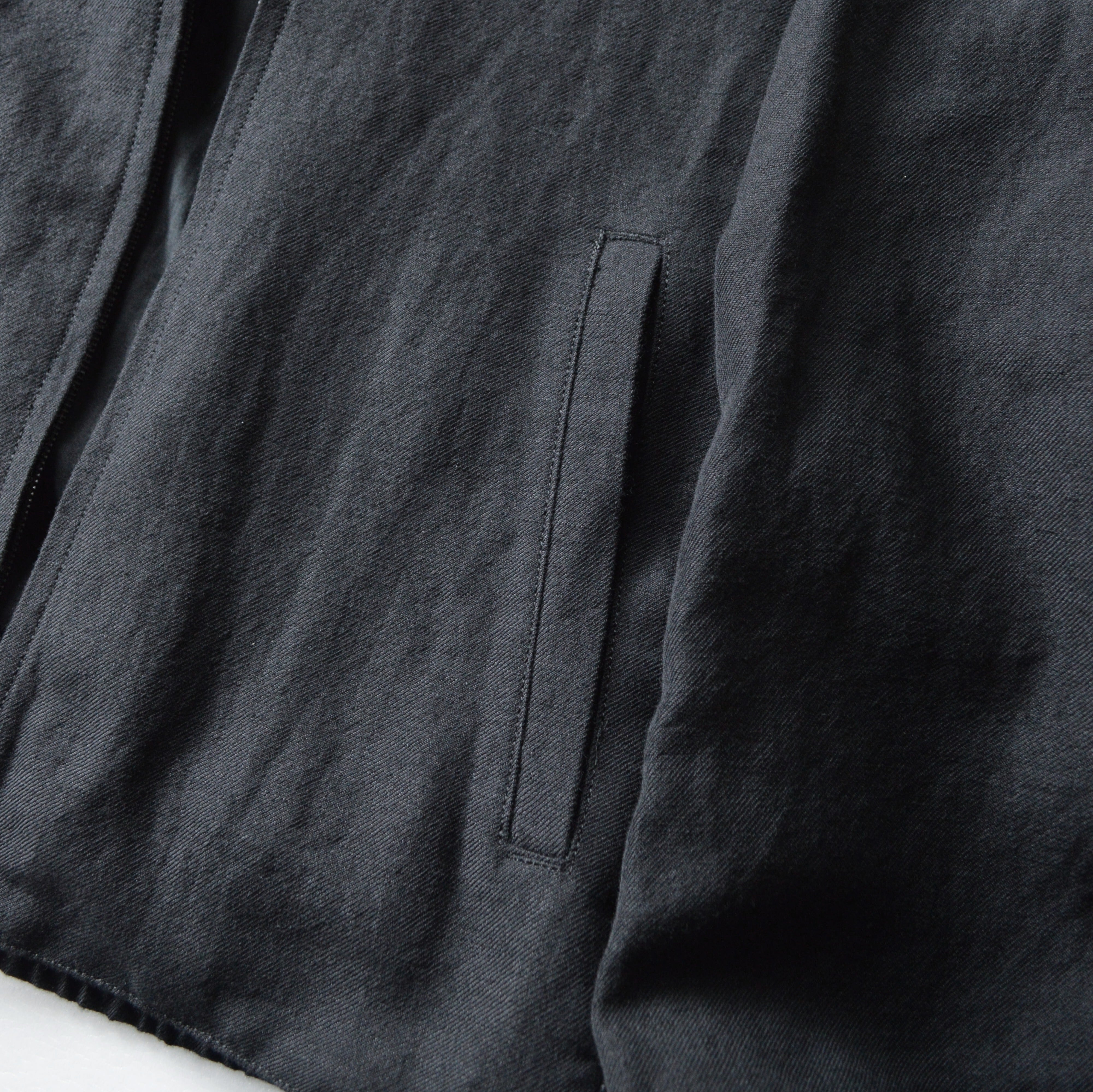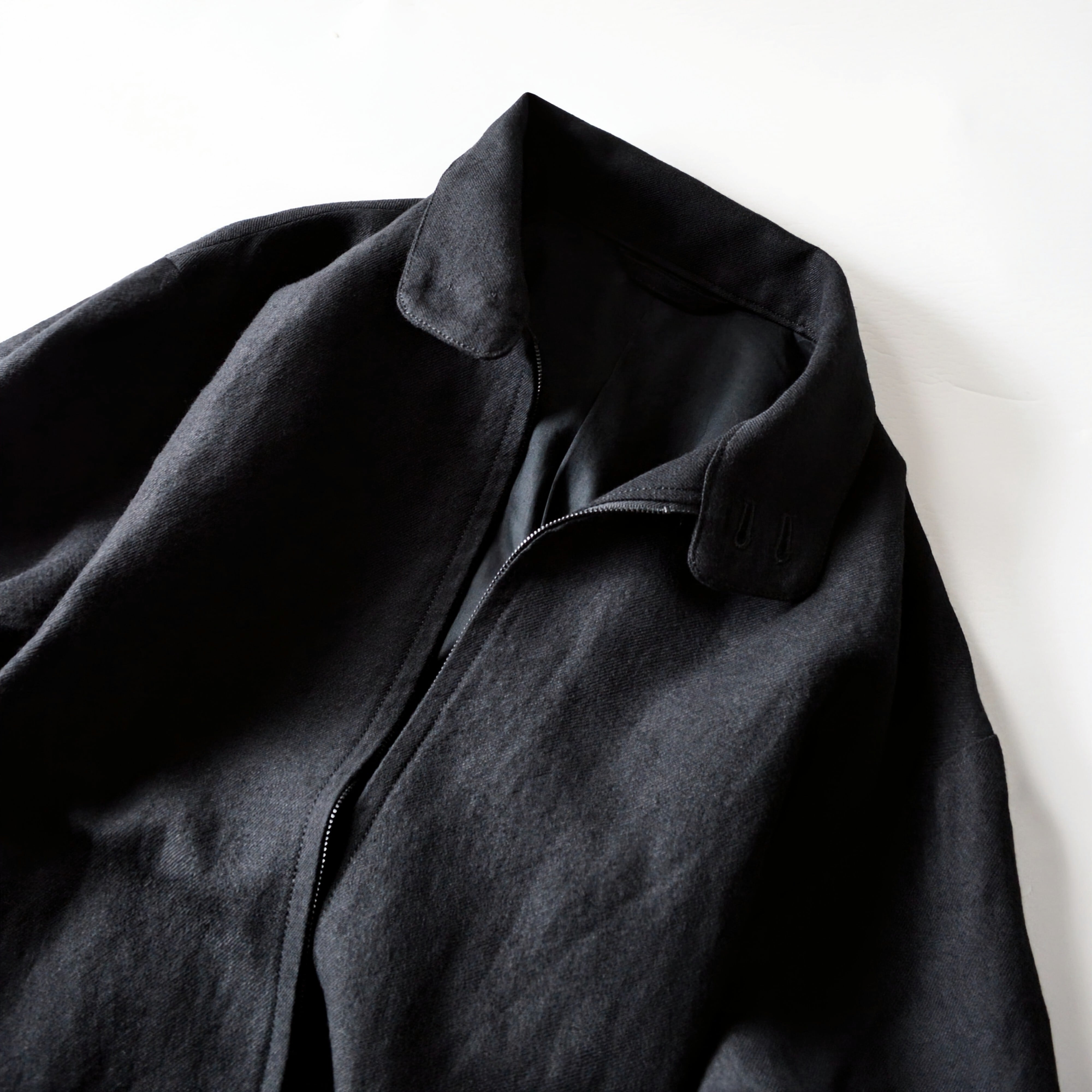ウールにみられる暖かみのある毛足とリネン独特の荒々しい風合いが混ざり合い、見るほどに奥行きが感じられます。近年続く暖冬をふまえて、ヘビーアウター1枚で暖を取るよりも重ね着によって細かく体温調節できるようなスタイルを意識しています。