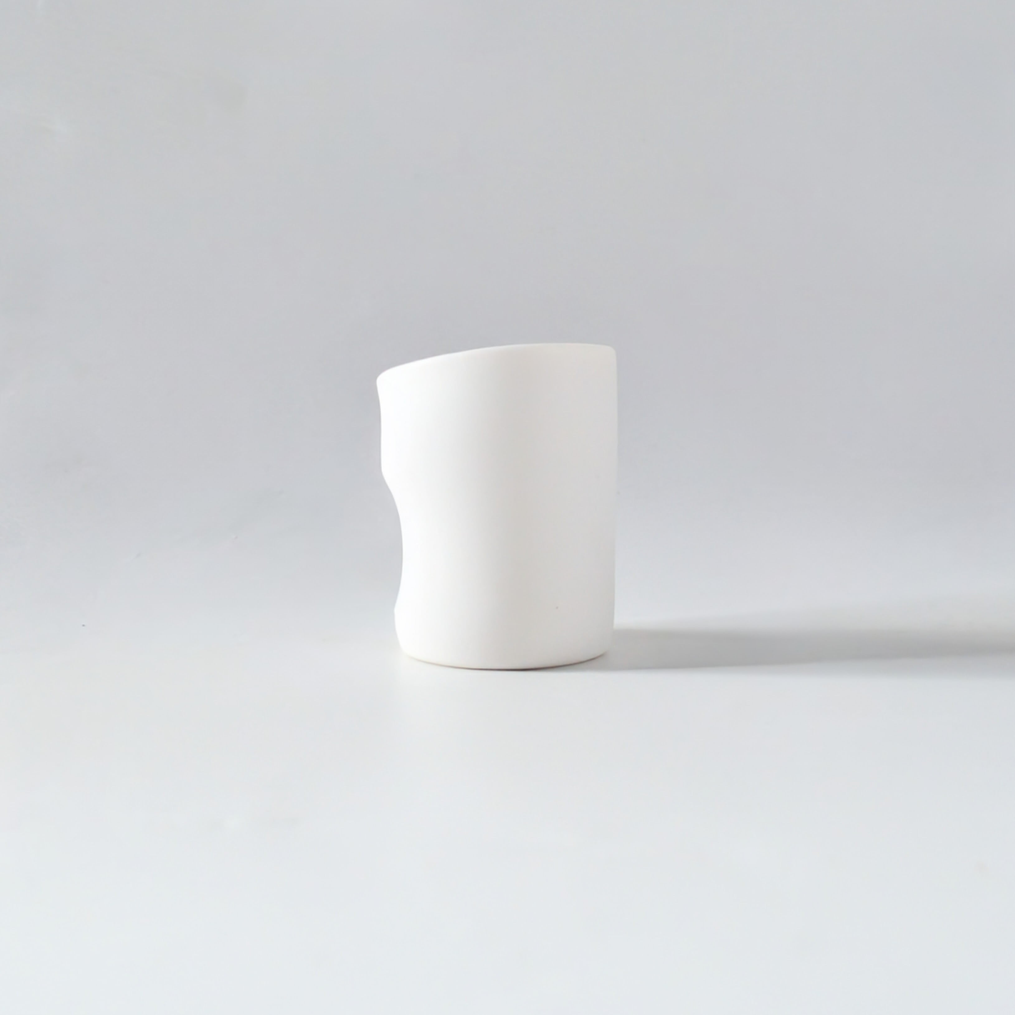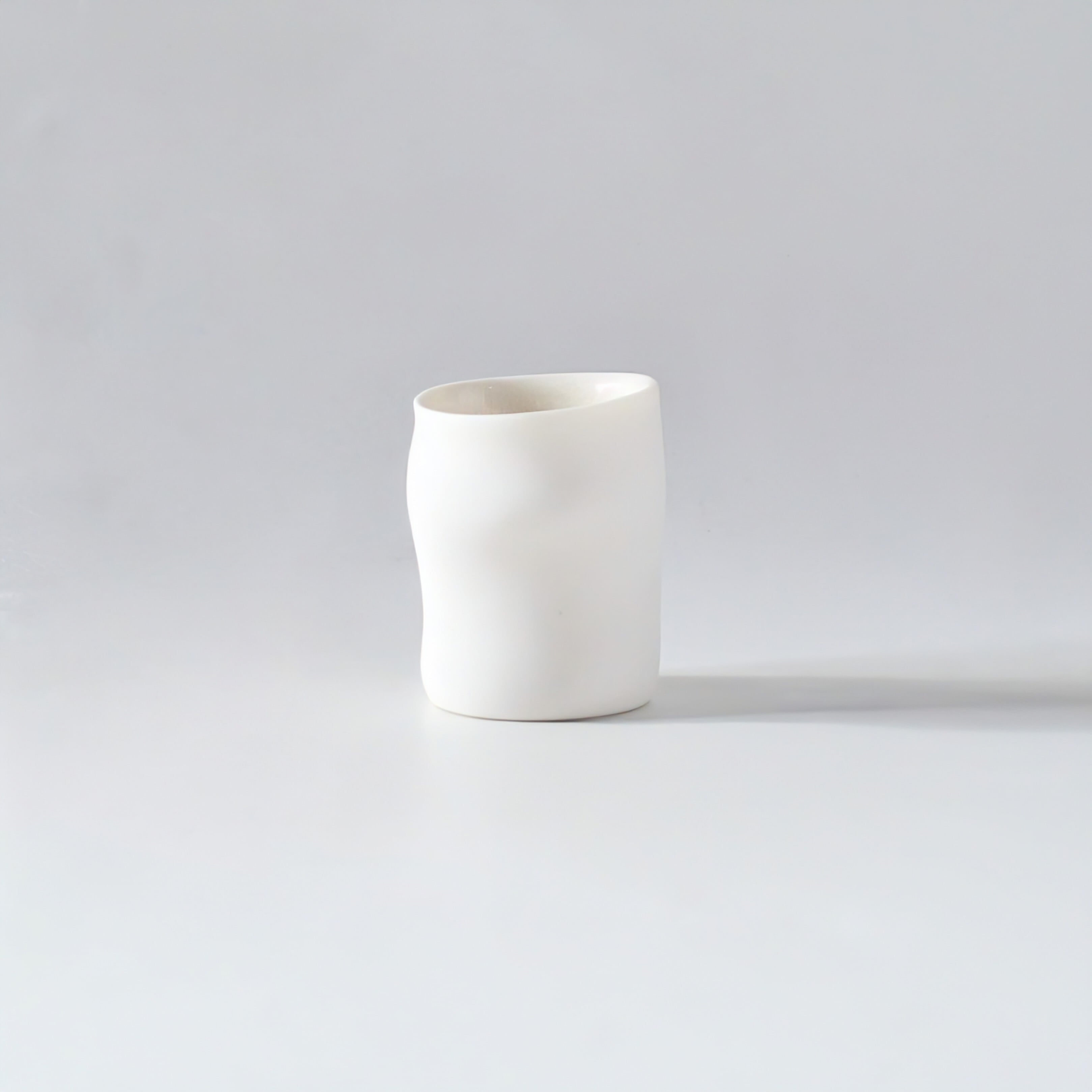 『MELT CUP』は焼成する前にひとつひとつ手作業で歪みをつけて形を作ることで、まるで溶け出しているような表情のあるカップ。
