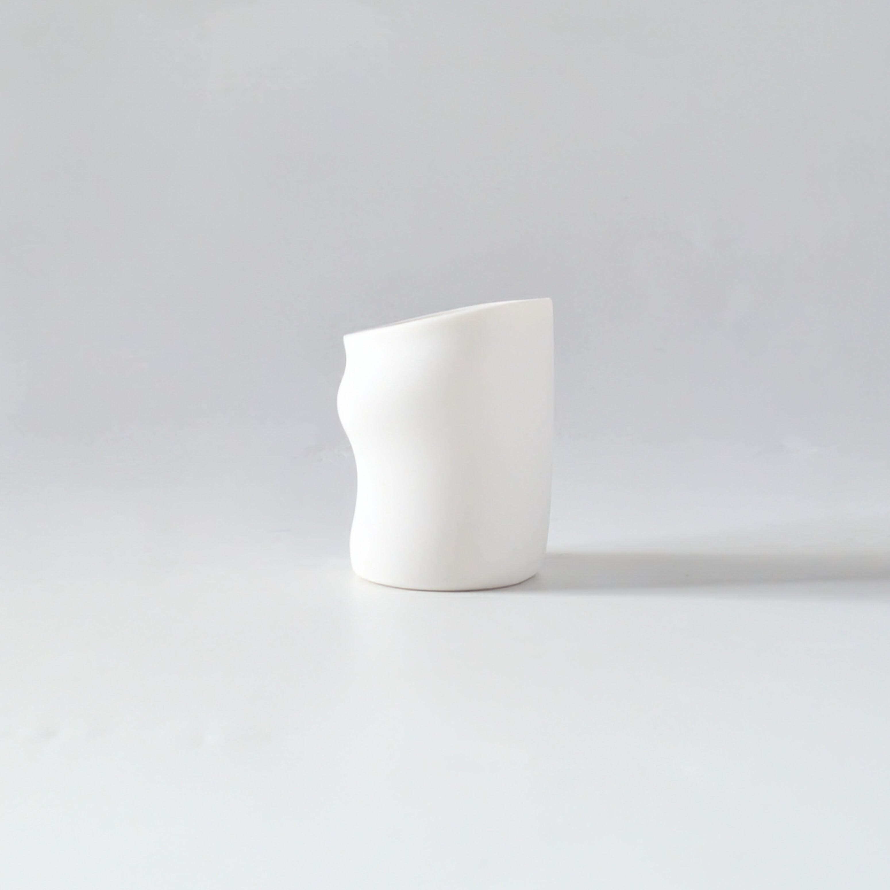 『MELT CUP』は焼成する前にひとつひとつ手作業で歪みをつけて形を作ることで、まるで溶け出しているような表情のあるカップ。