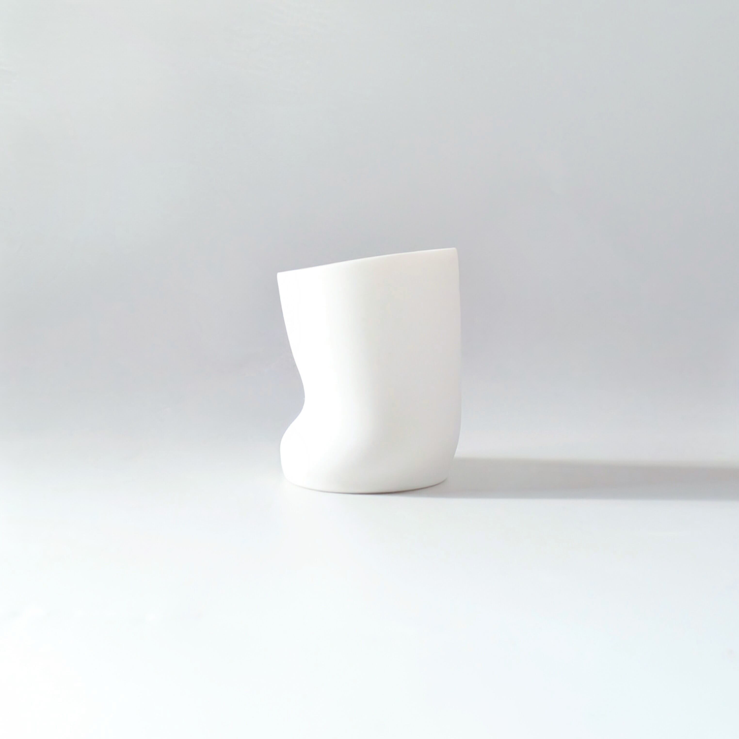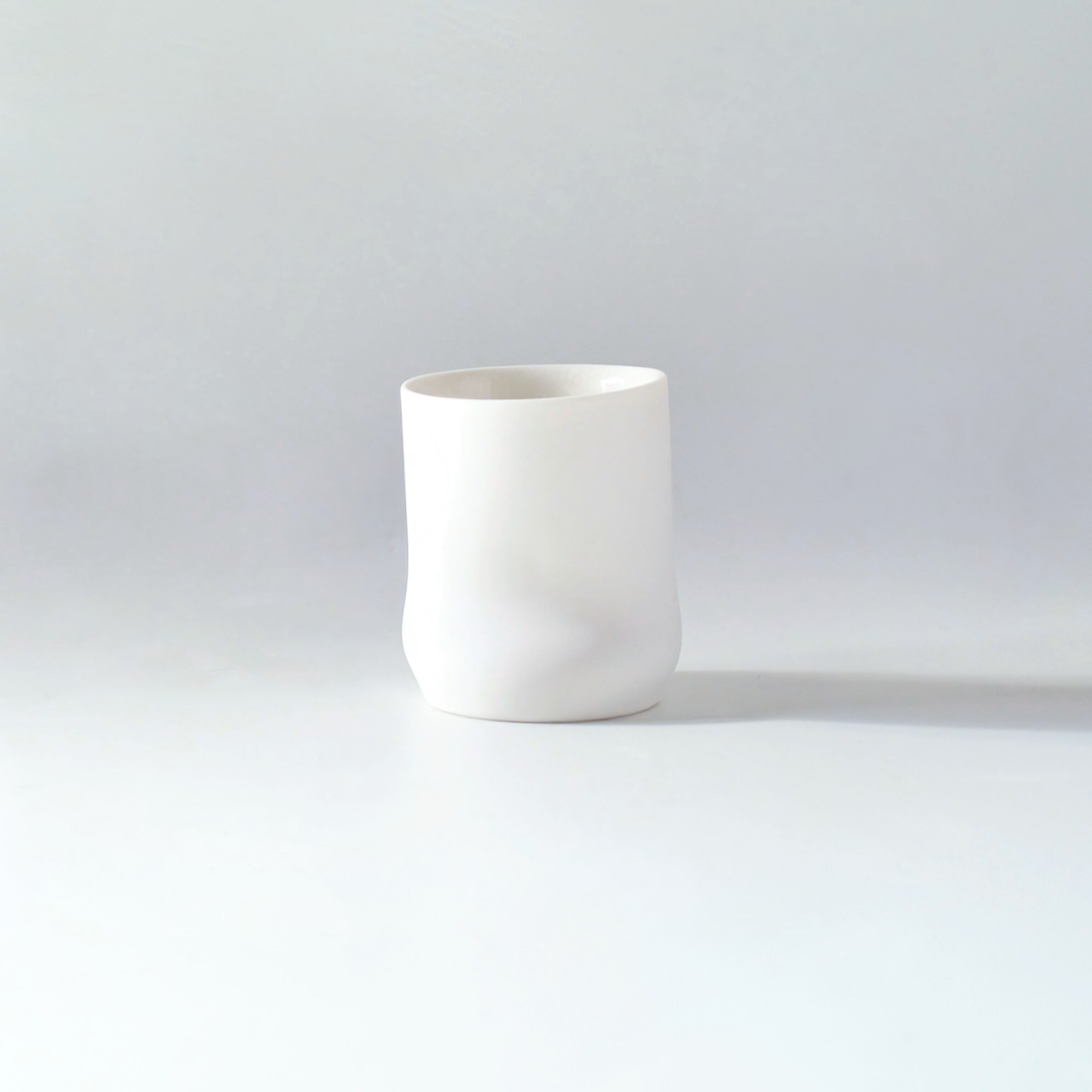 『MELT CUP』は焼成する前にひとつひとつ手作業で歪みをつけて形を作ることで、まるで溶け出しているような表情のあるカップ。