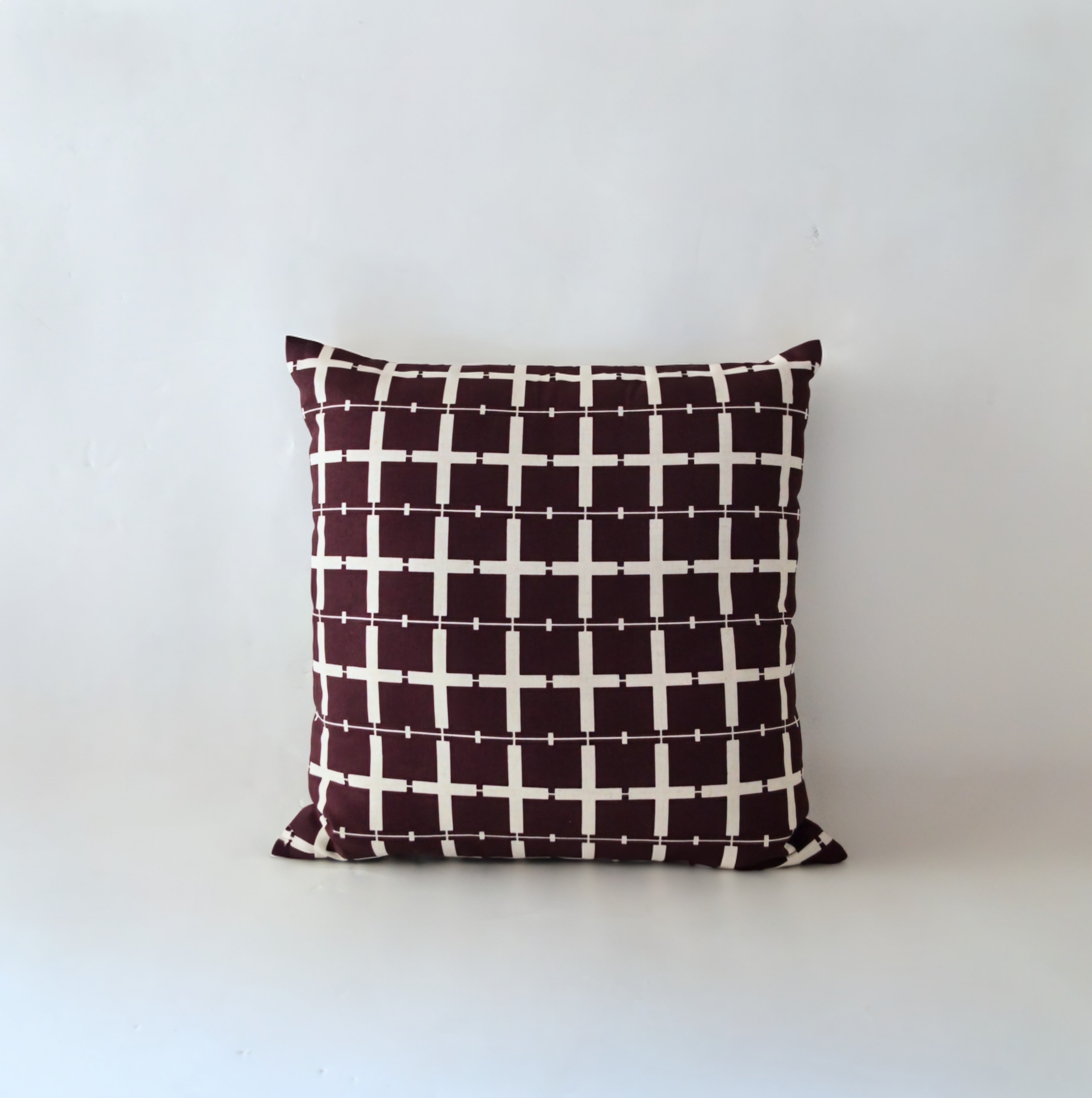 創業140年の日本を代表するテキスタイルデザインカンパニー〈fujie textile〉とグラフィックデザイナーの小林一毅さんの協業により、2024年に発表されたテキスタイルシリーズを使用したクッション。