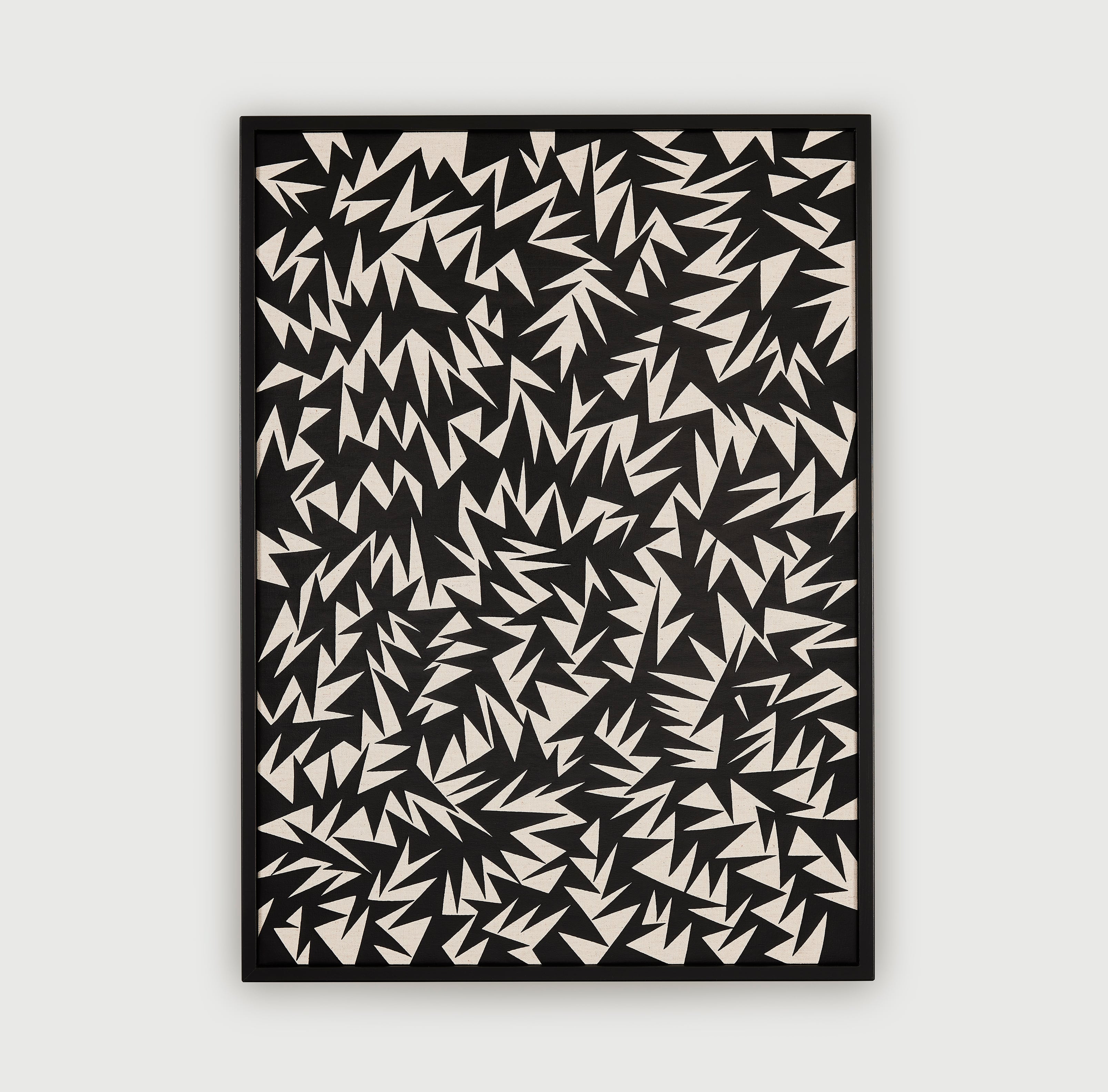 創業140年の日本を代表するテキスタイルデザインカンパニー〈fujie textile〉とグラフィックデザイナーの小林一毅さんの協業によって2025年に発表されたテキスタイルアートコレクション『Between black & white』。