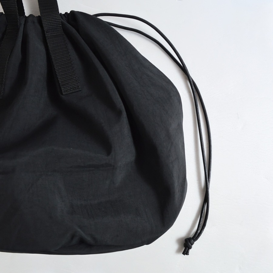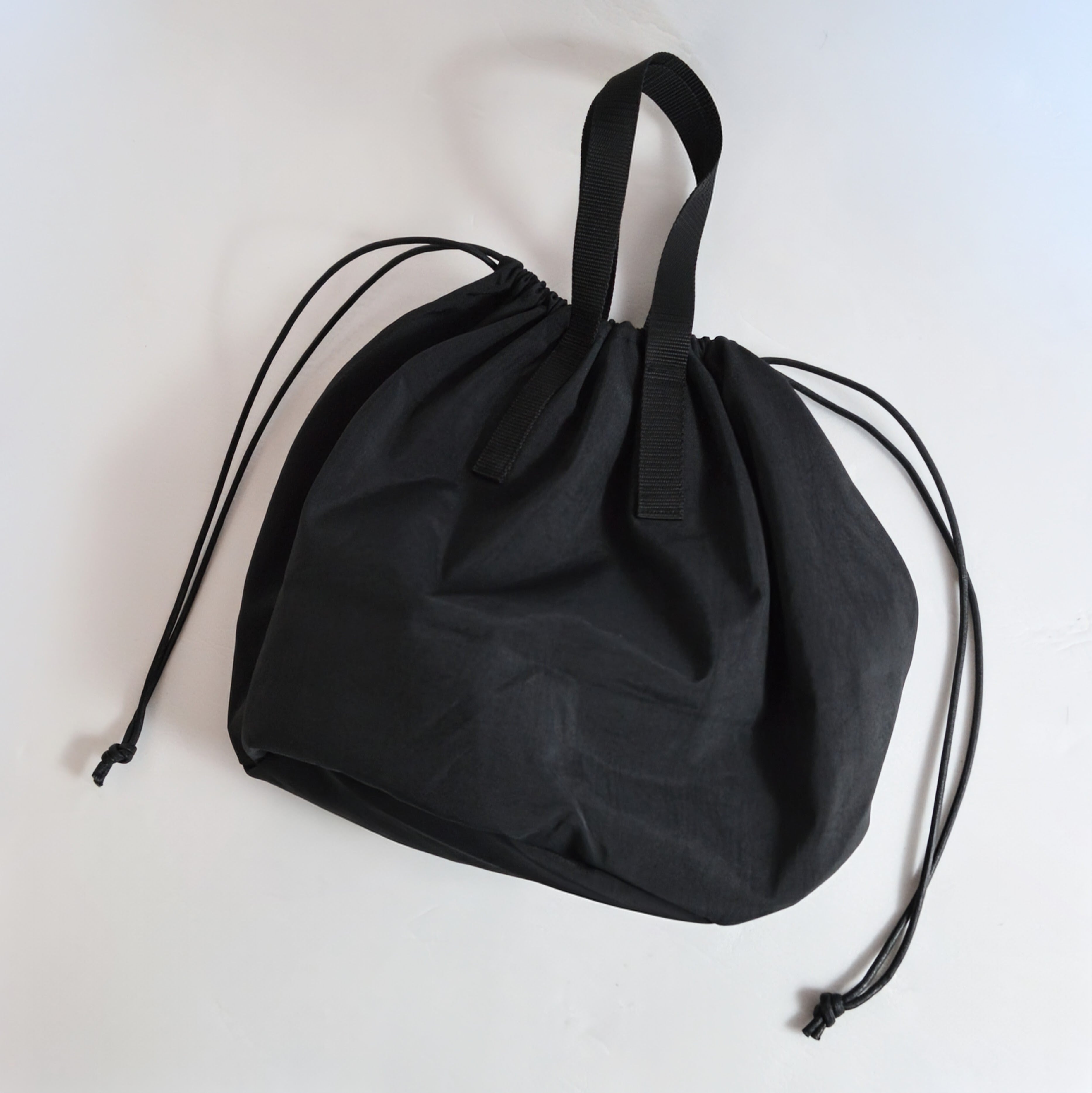 巾着袋のような構造になっており、上部左右に通されたコードを引っ張り開閉します。