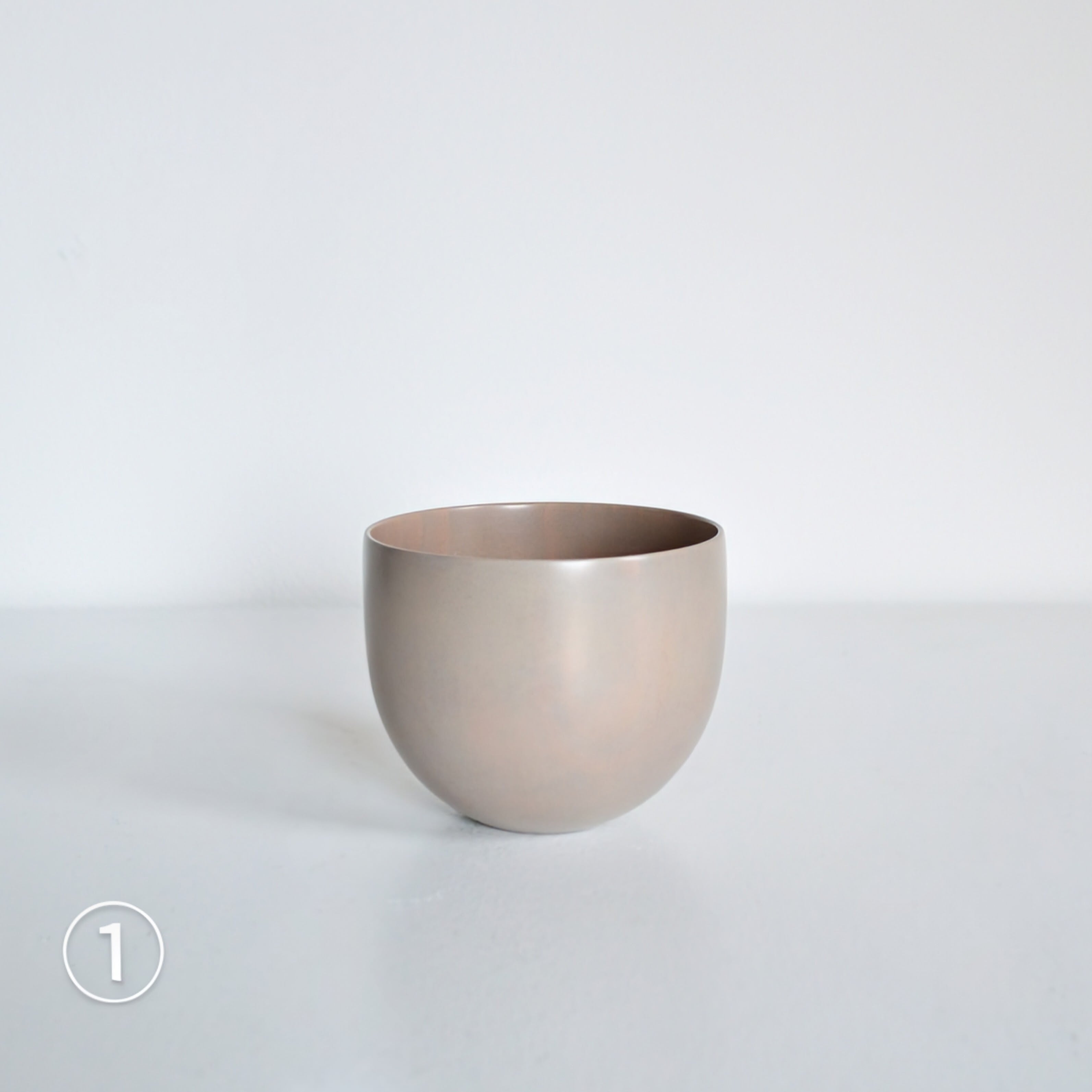 彫刻のように有機的かつシャープなフォルムを象り、絵を描くように漆を塗り重ねた人肌のようなうつわ。1点1点、少しずつ大きさも違う繊細でゆらぎのある造形、若干の筆跡が残された表面、優しい温もりを感じる表情。