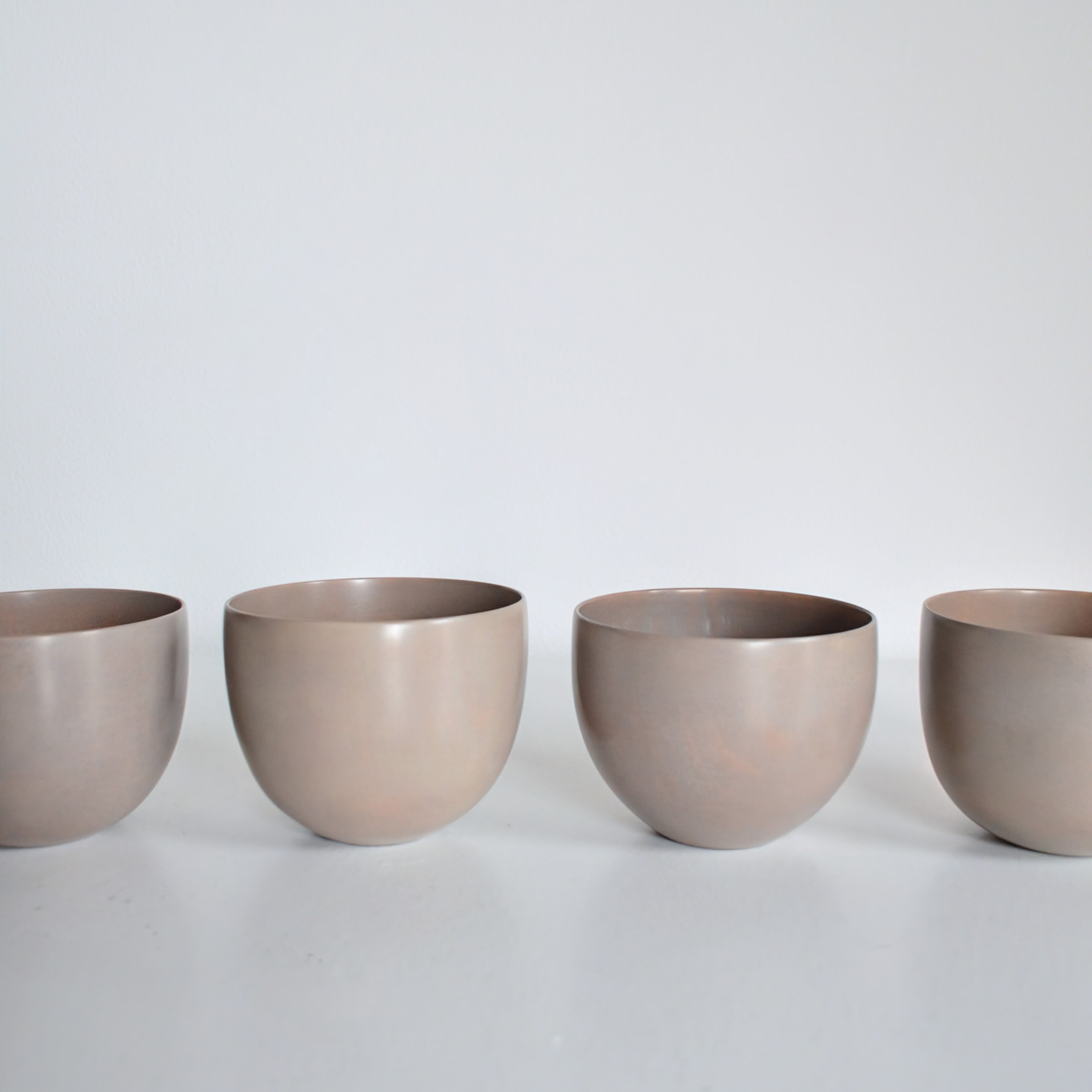彫刻のように有機的かつシャープなフォルムを象り、絵を描くように漆を塗り重ねた人肌のようなうつわ。1点1点、少しずつ大きさも違う繊細でゆらぎのある造形、若干の筆跡が残された表面、優しい温もりを感じる表情。