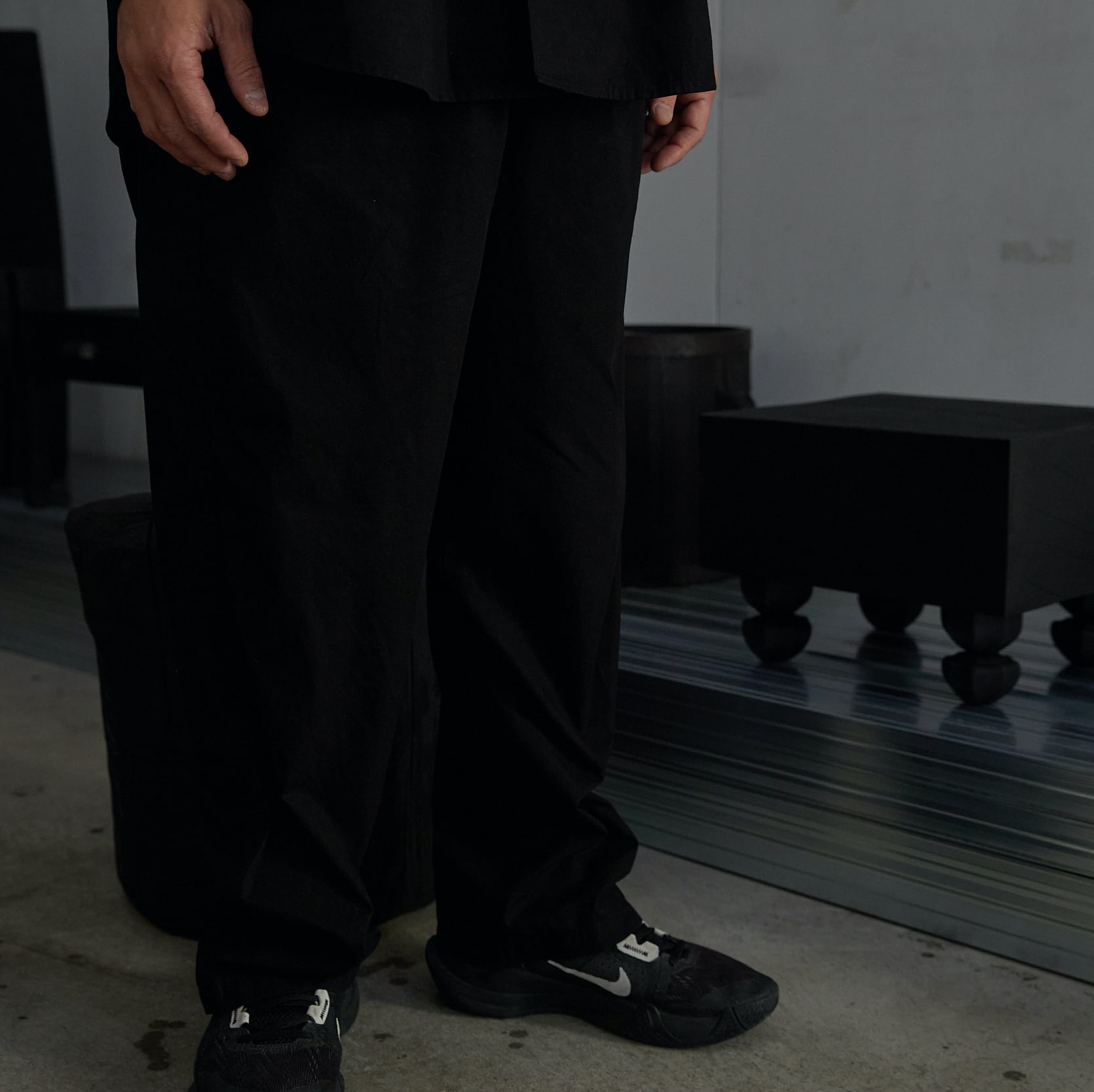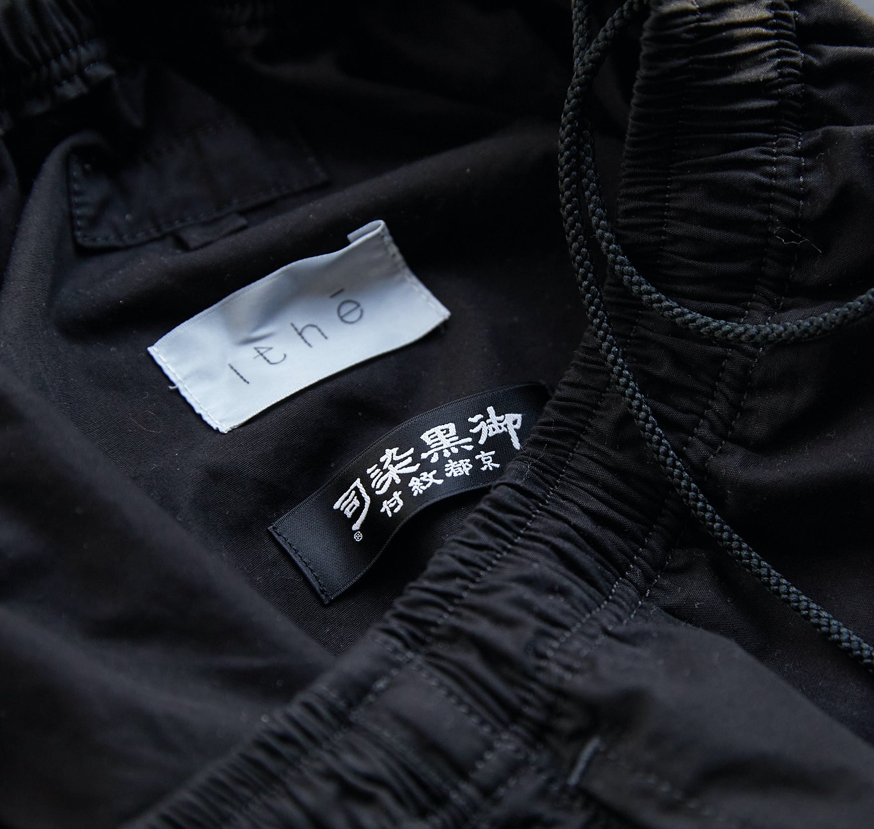 metabolicとのコラボレーションによる企画展 "ESSENTIALS"モデルは日本の伝統的な正装である黒紋付だけを100年の間染め上げてきた〈京都紋付〉による製品染めを行っています。