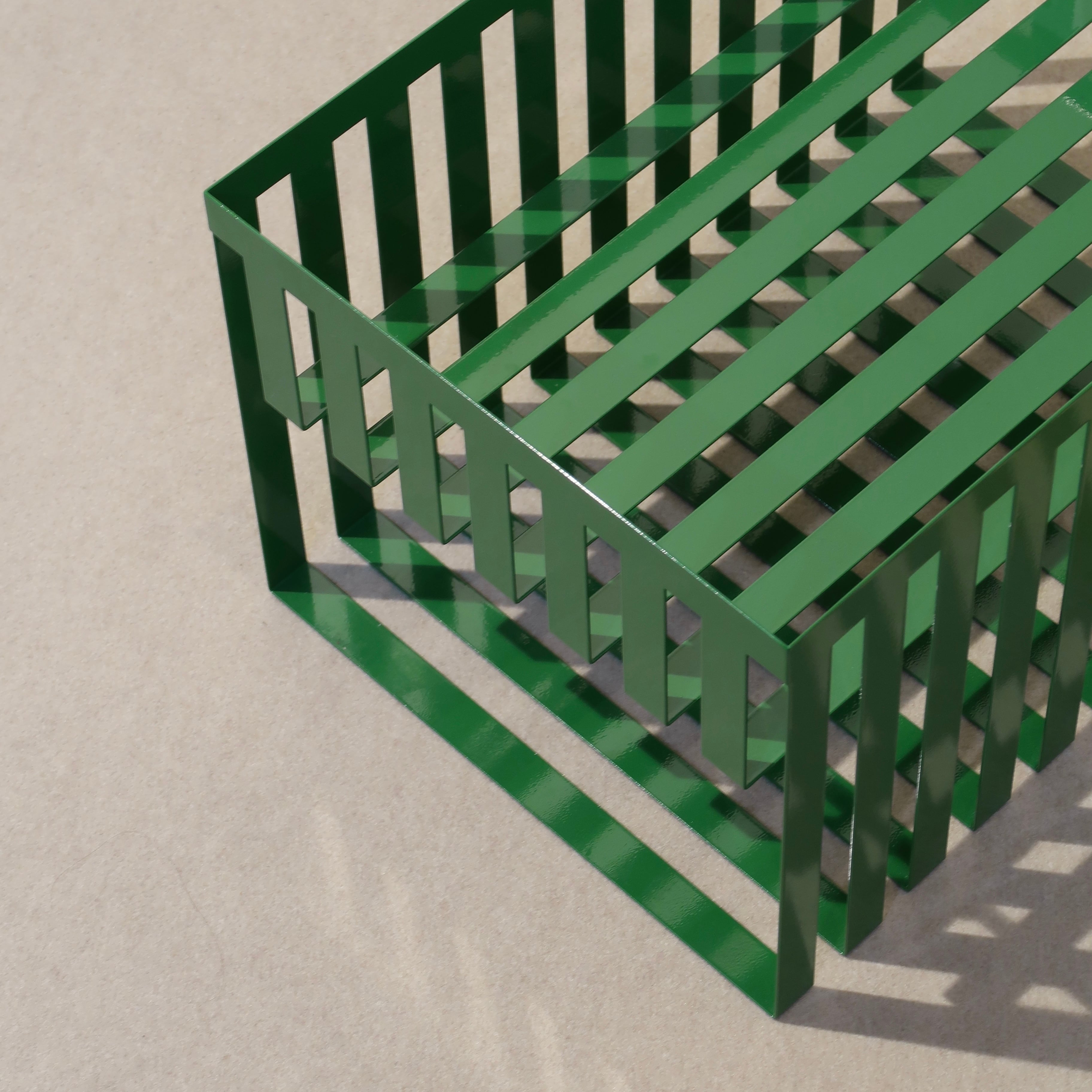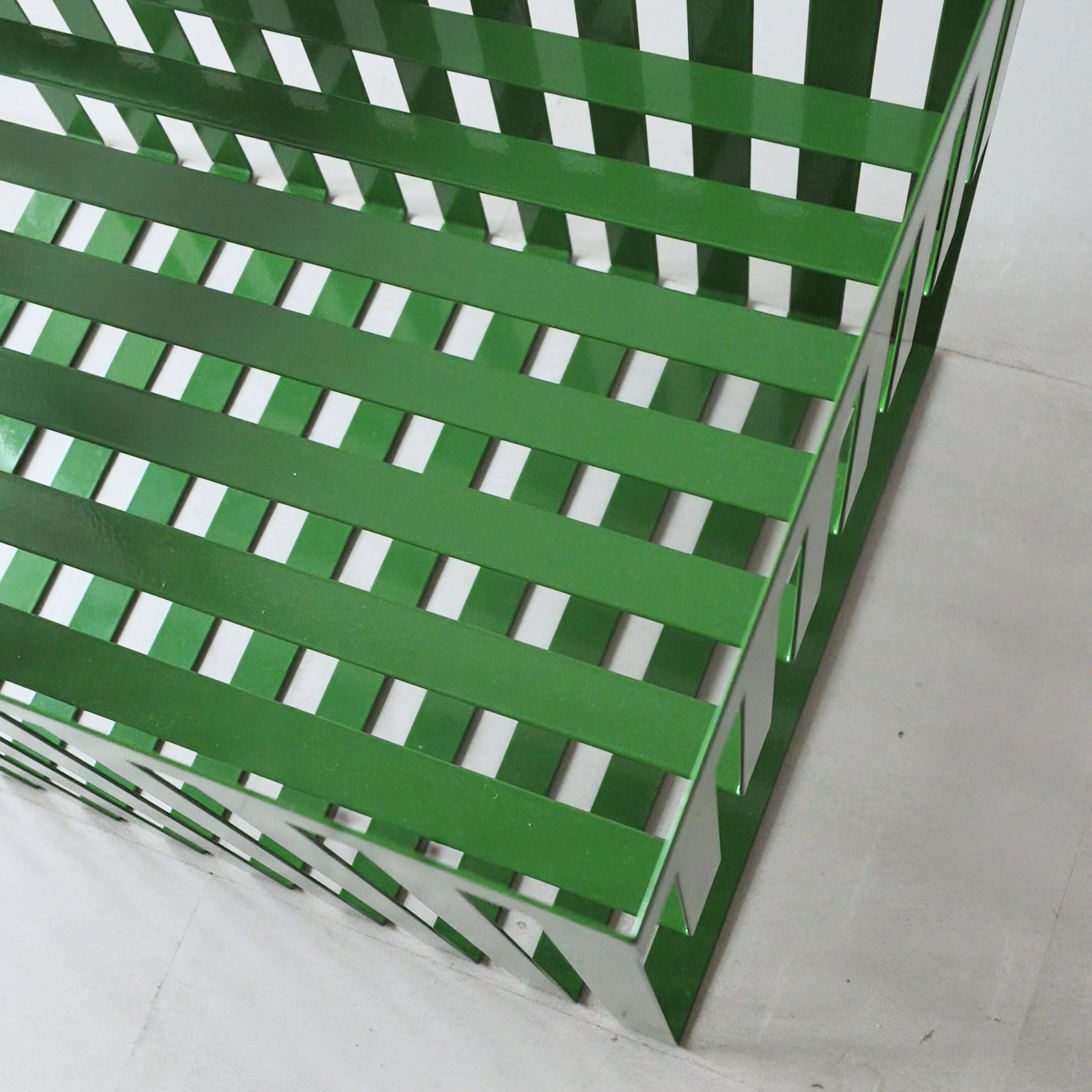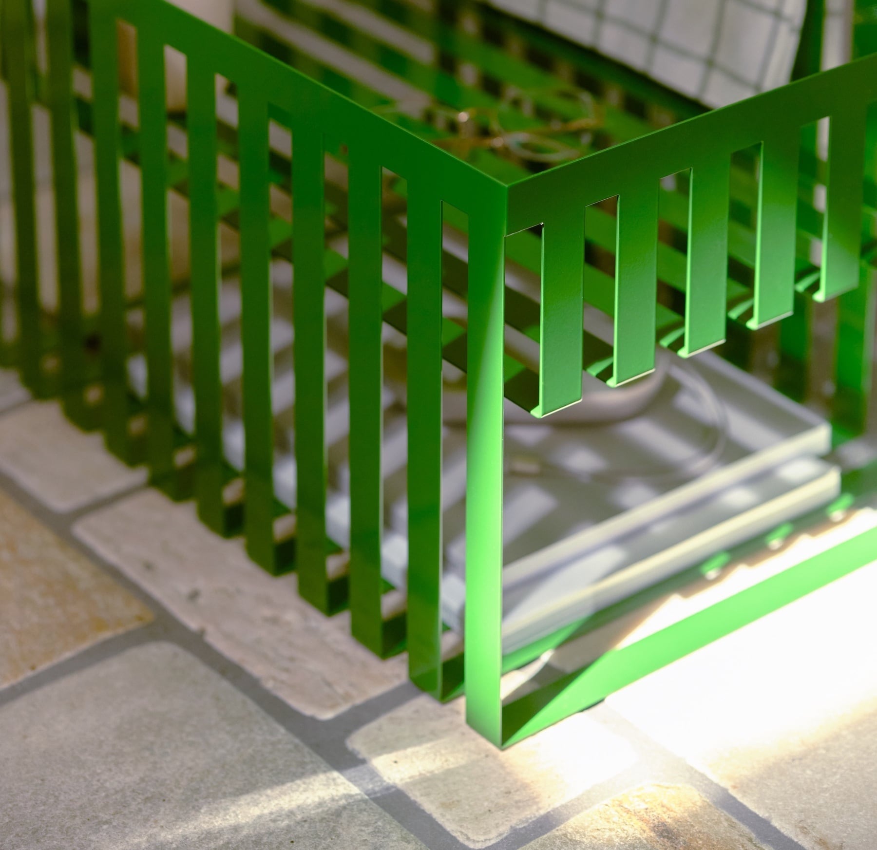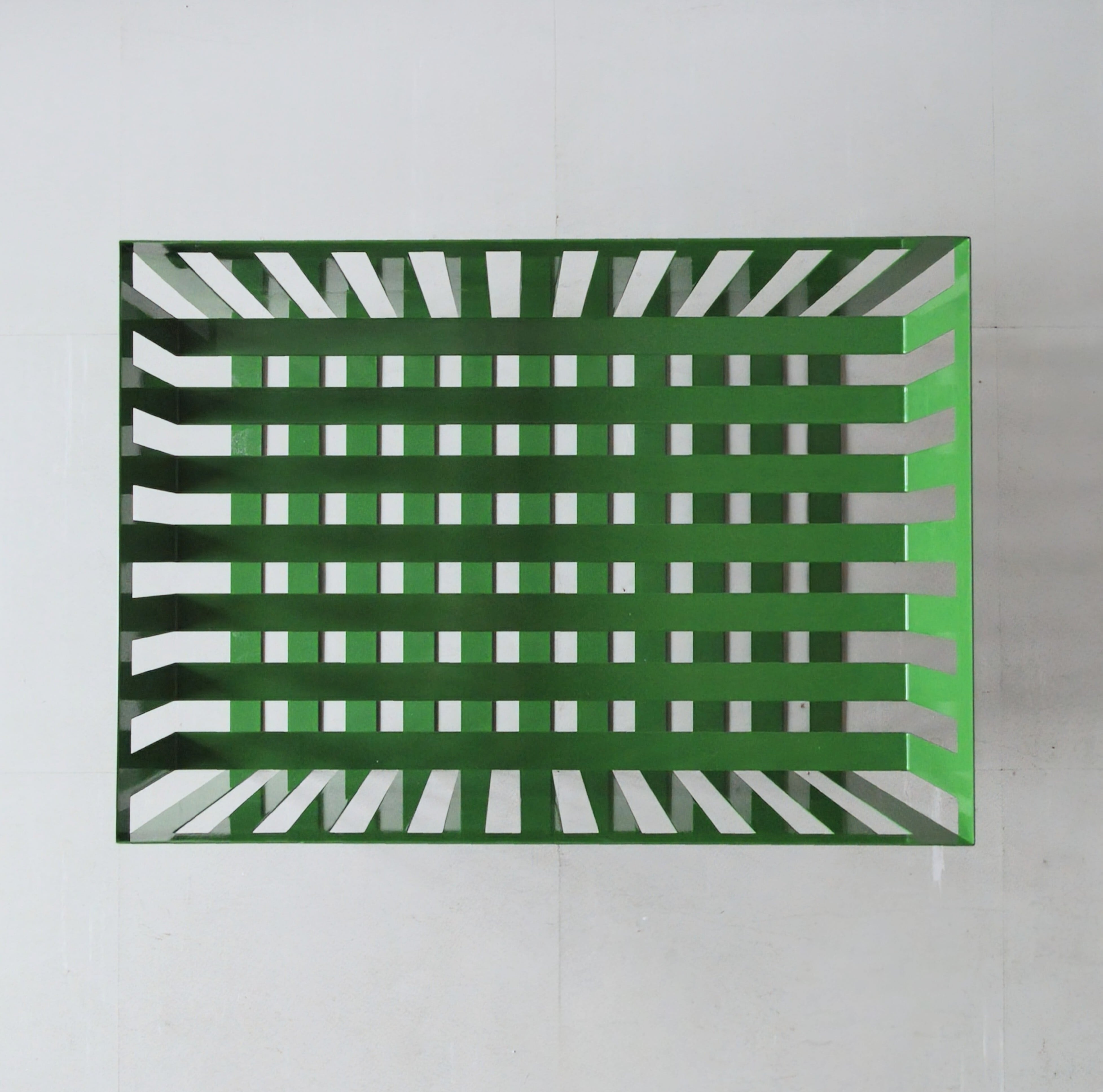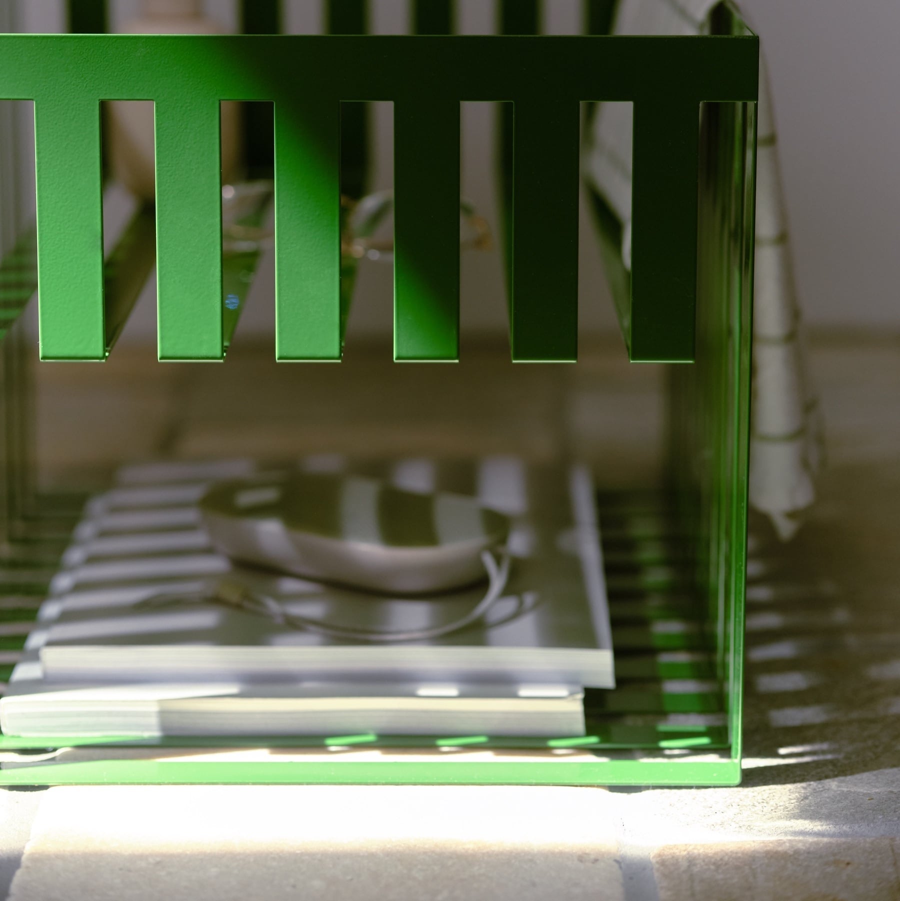 東京とコペンハーゲンを拠点に活動するプロダクトデザイナー、〈CALDEIRA ERINA〉さんによる、鮮やかなグリーンと交差する陰影が印象的なバスケット。