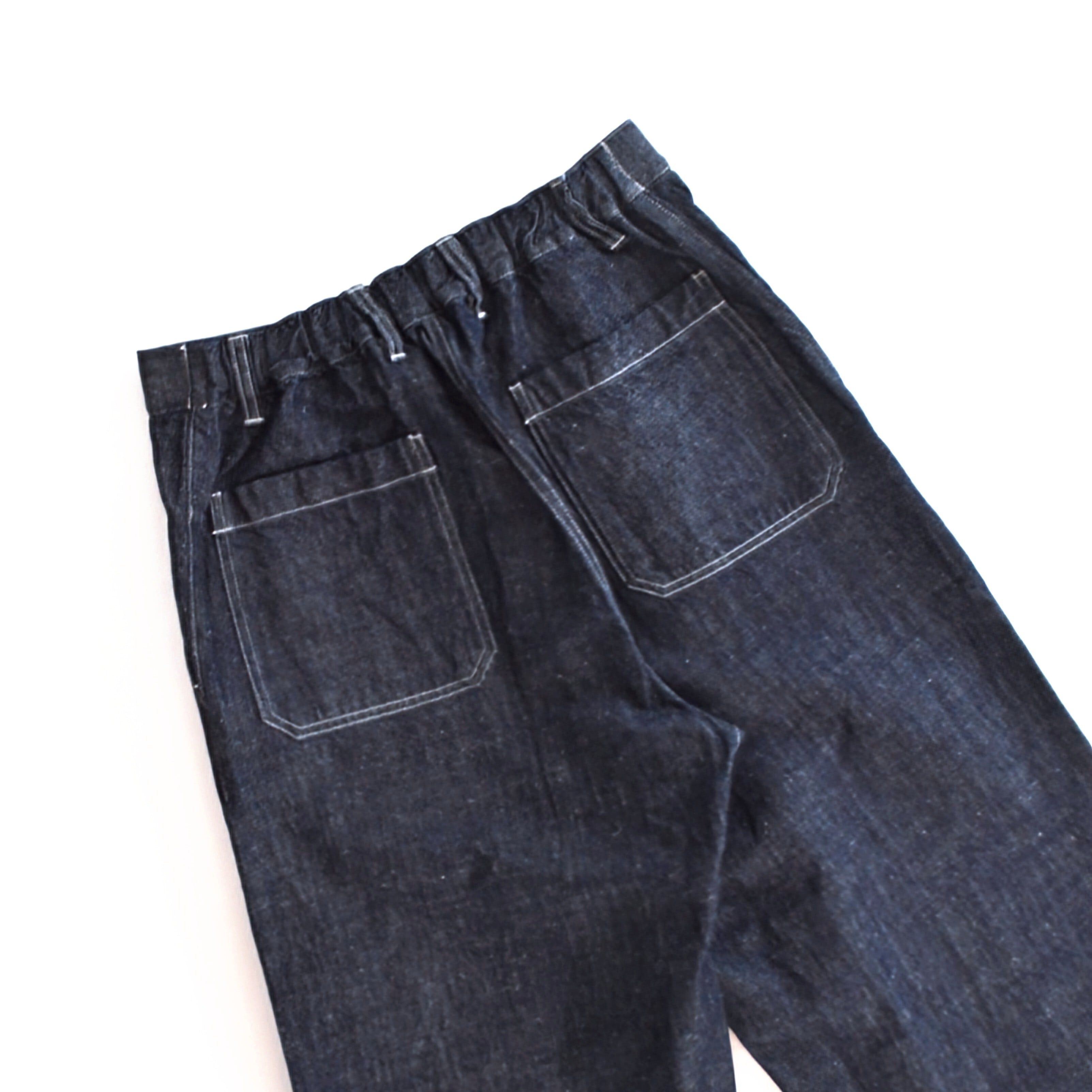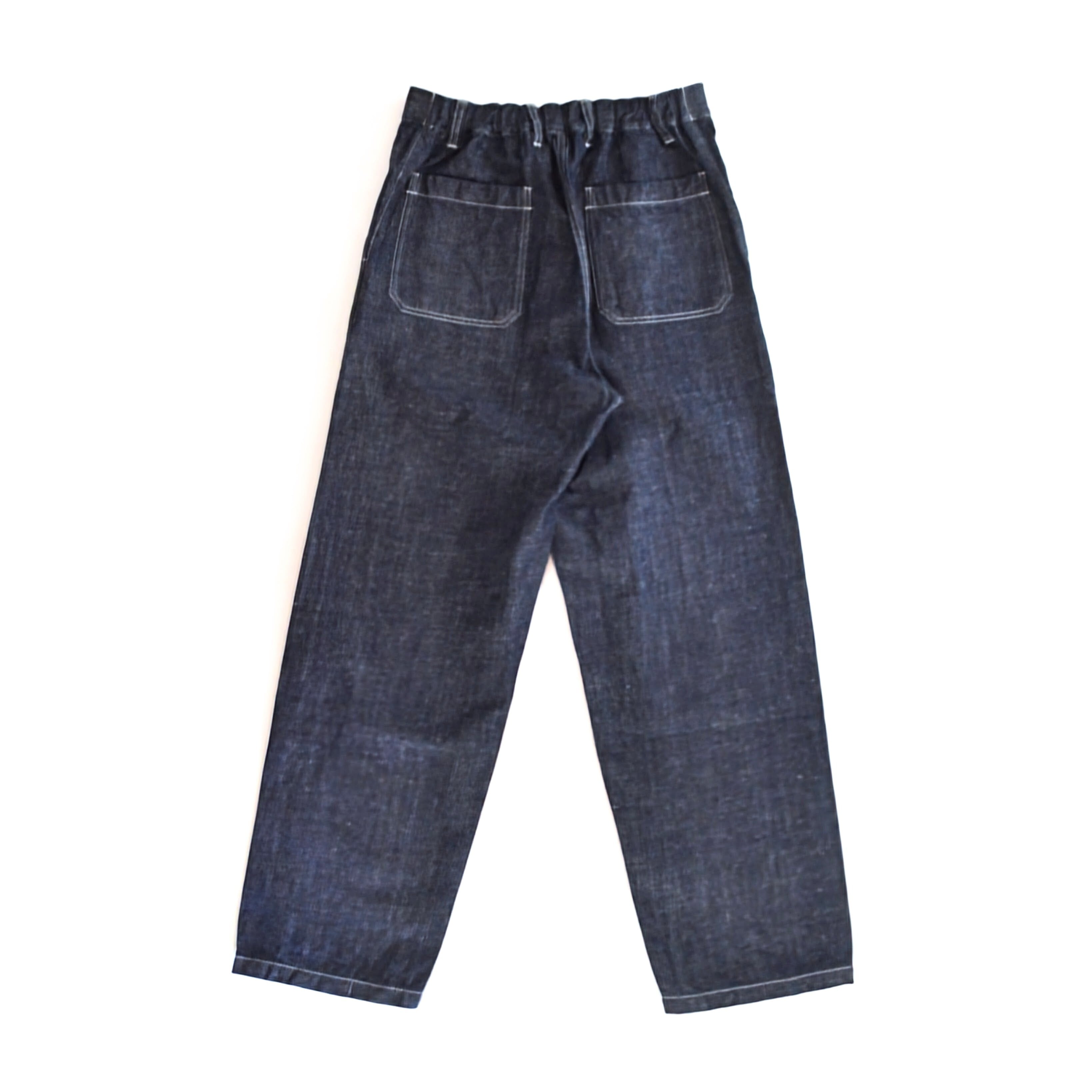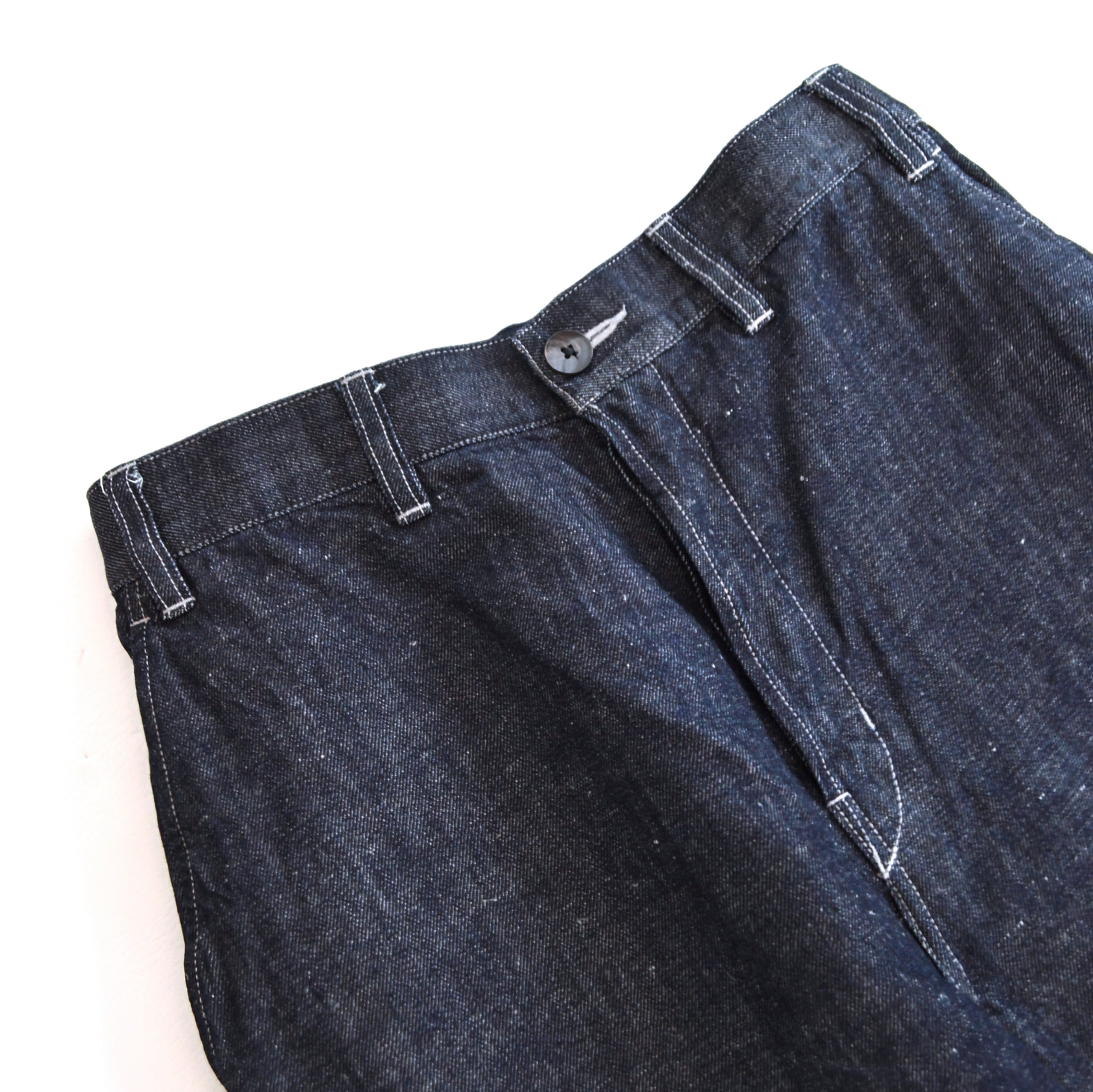 ワークウェアの文脈を踏まえながらも、既存のジーンズの形を踏襲せずに日常の道具として再定義されたデザインに。