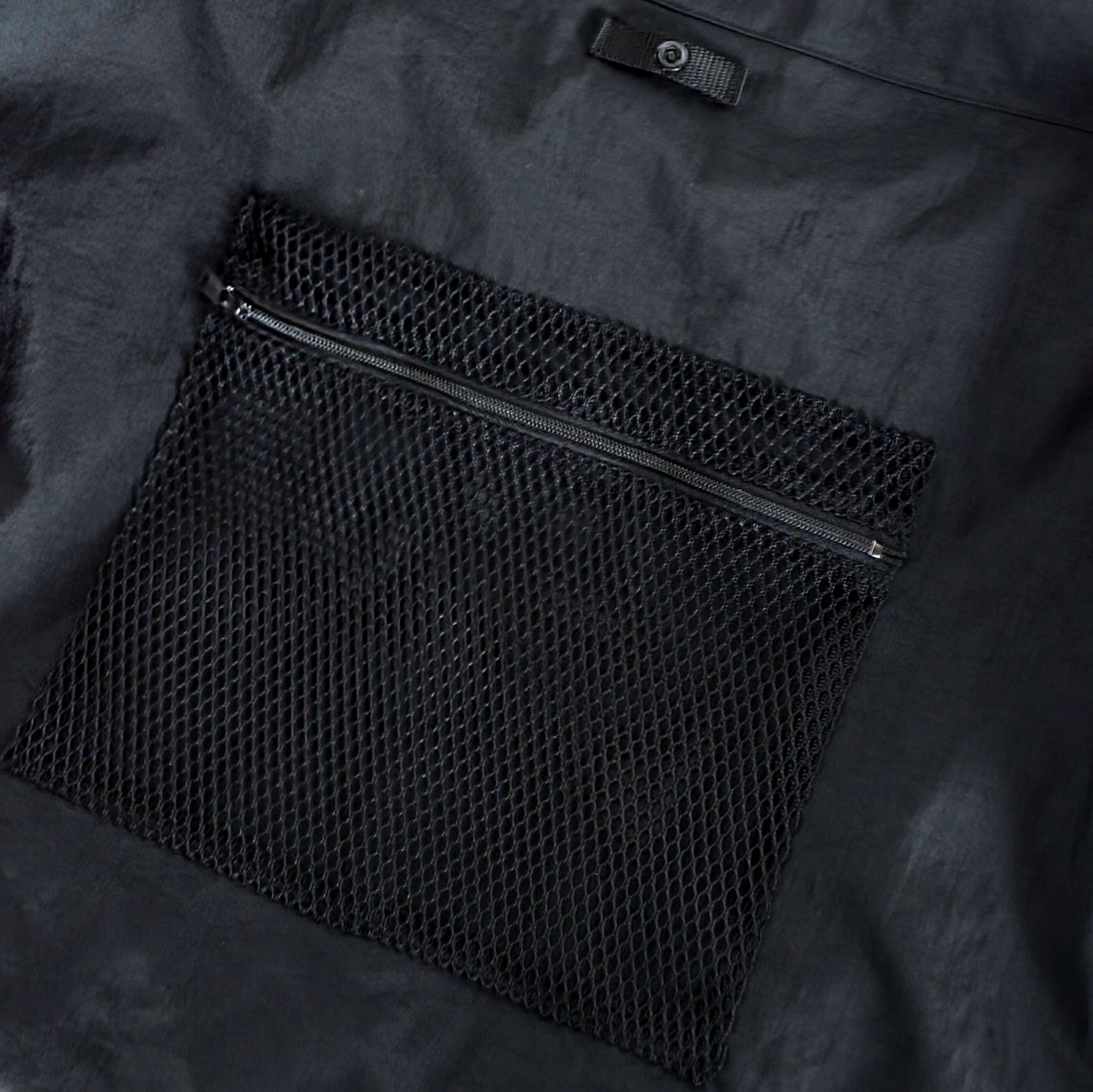 生地は特殊なポリウレタンの微多孔質膜構造により防水性・透湿性に優れたブリザテックナイロン。軽量でハリがあり、マットな質感が特徴です。