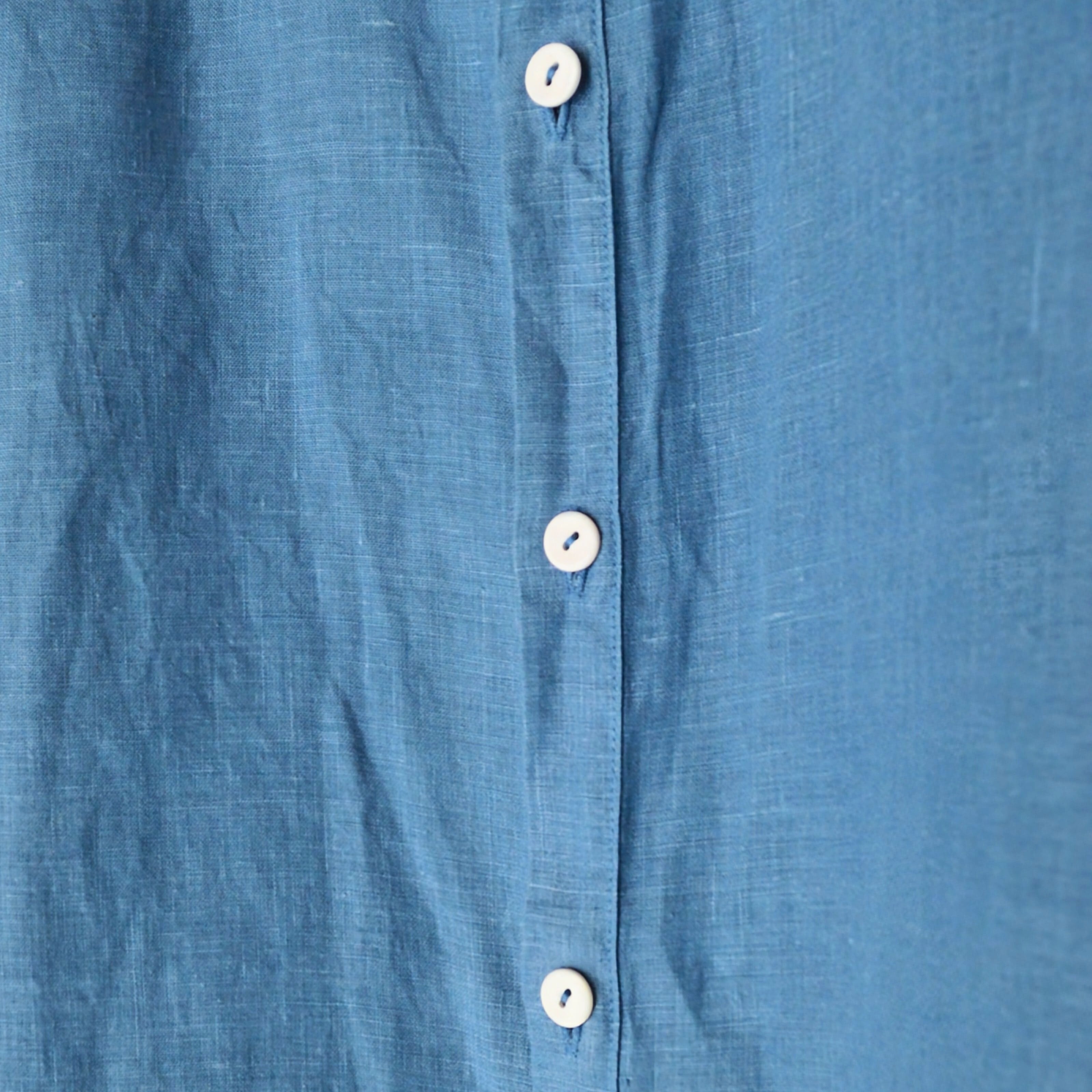*天然藍で染色しています。使用を繰返すことで淡い色へと変化していきます。色移りの可能性があるので、初めは淡色のものとの使用は控え、中性洗剤で洗濯し、陰干してください。製品染めの為、1点1点、色の出方やサイズが微妙に異なります。