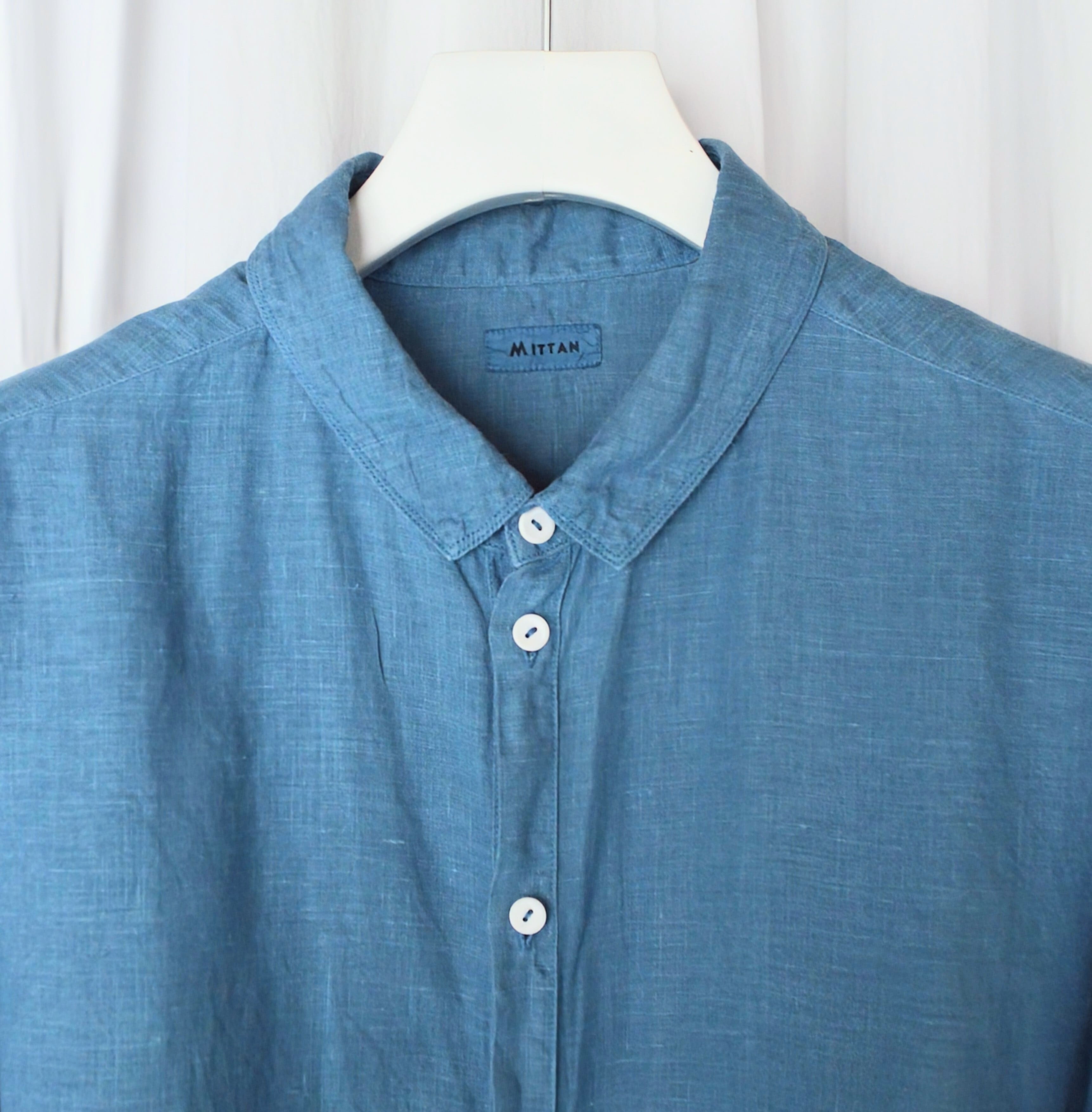 MITTANを代表するモデルのひとつである大麻シャツを、ゆとりのあるシルエットにアレンジした大麻シャツ 大。