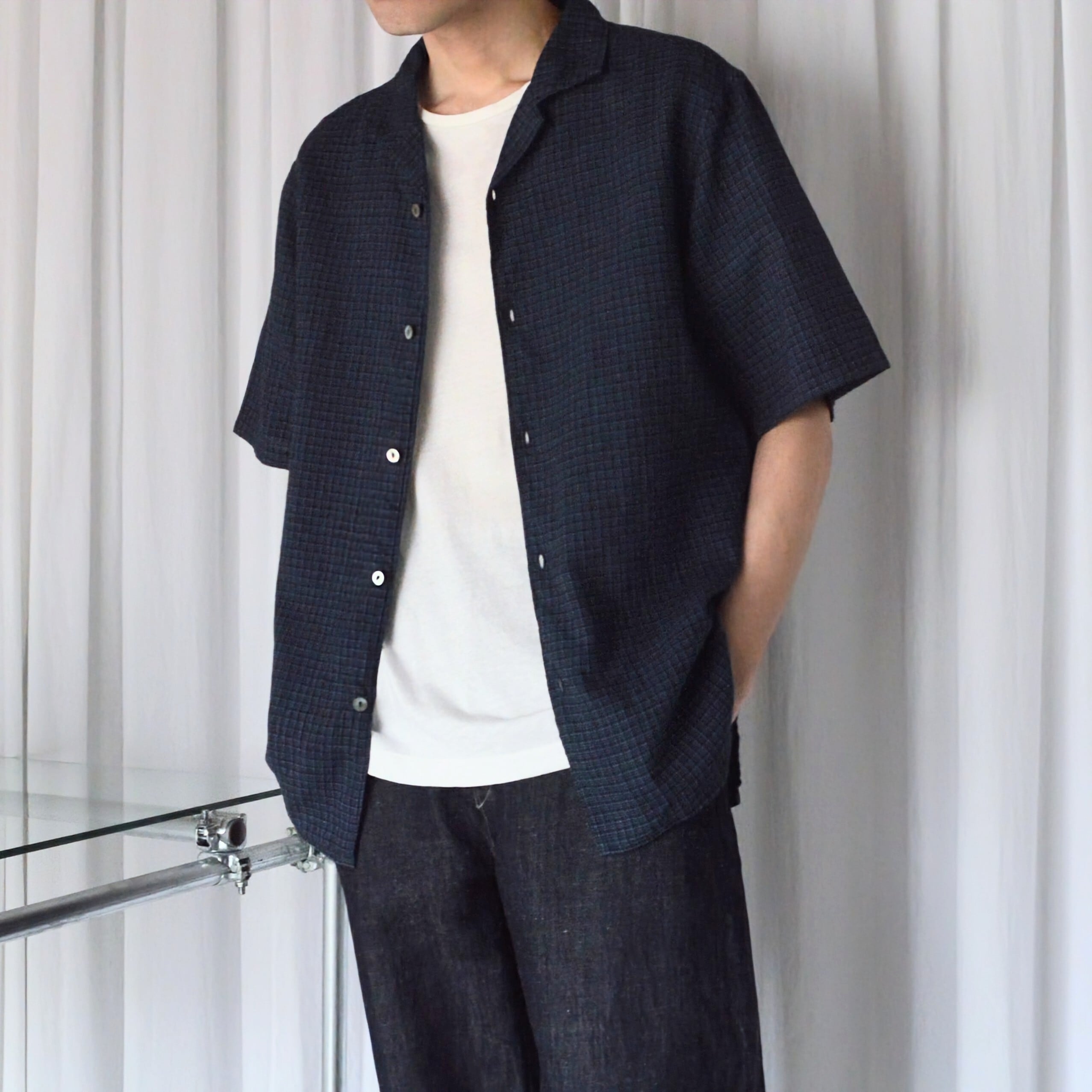 【NEW】MITTAN / SH-153 毛亜麻格子開襟シャツ