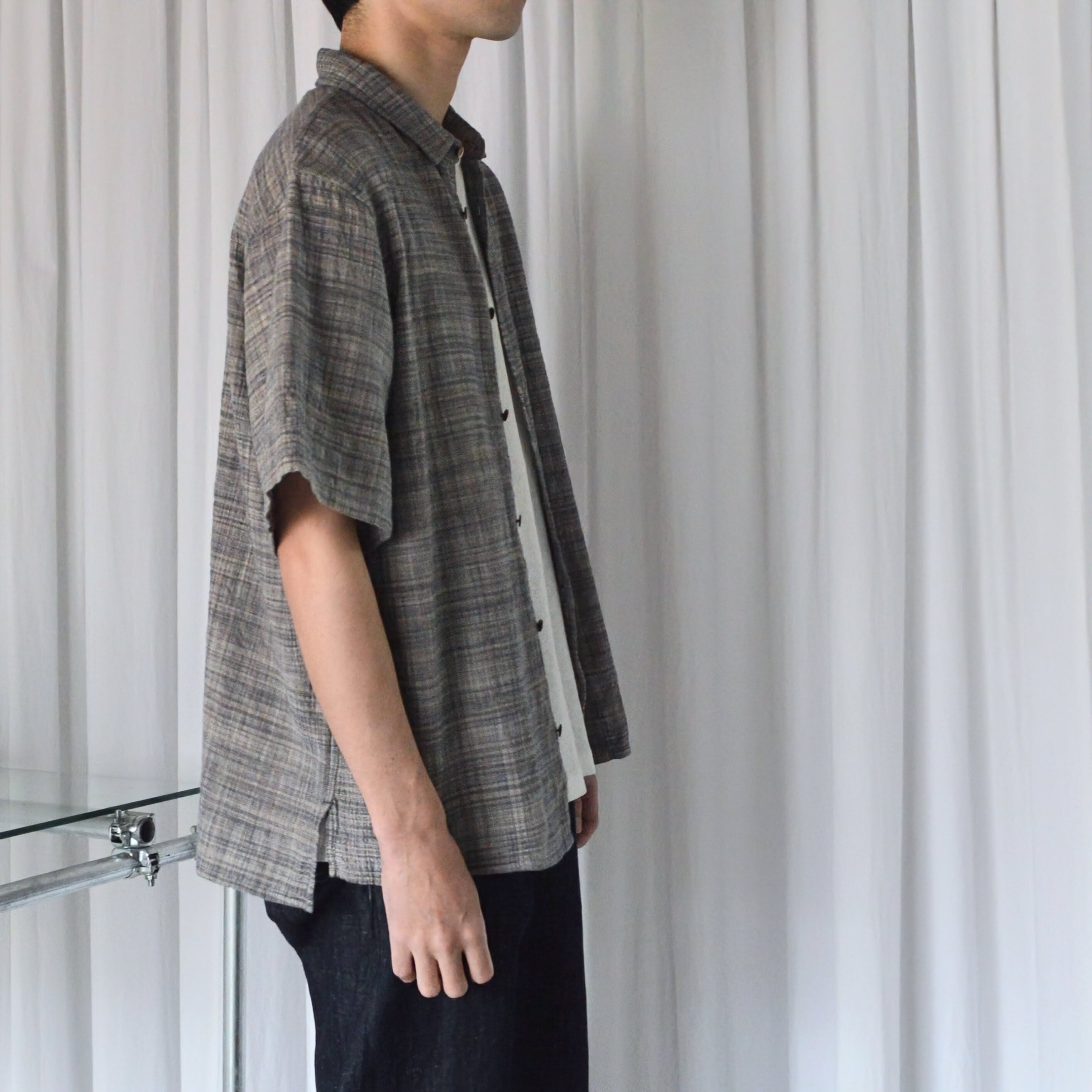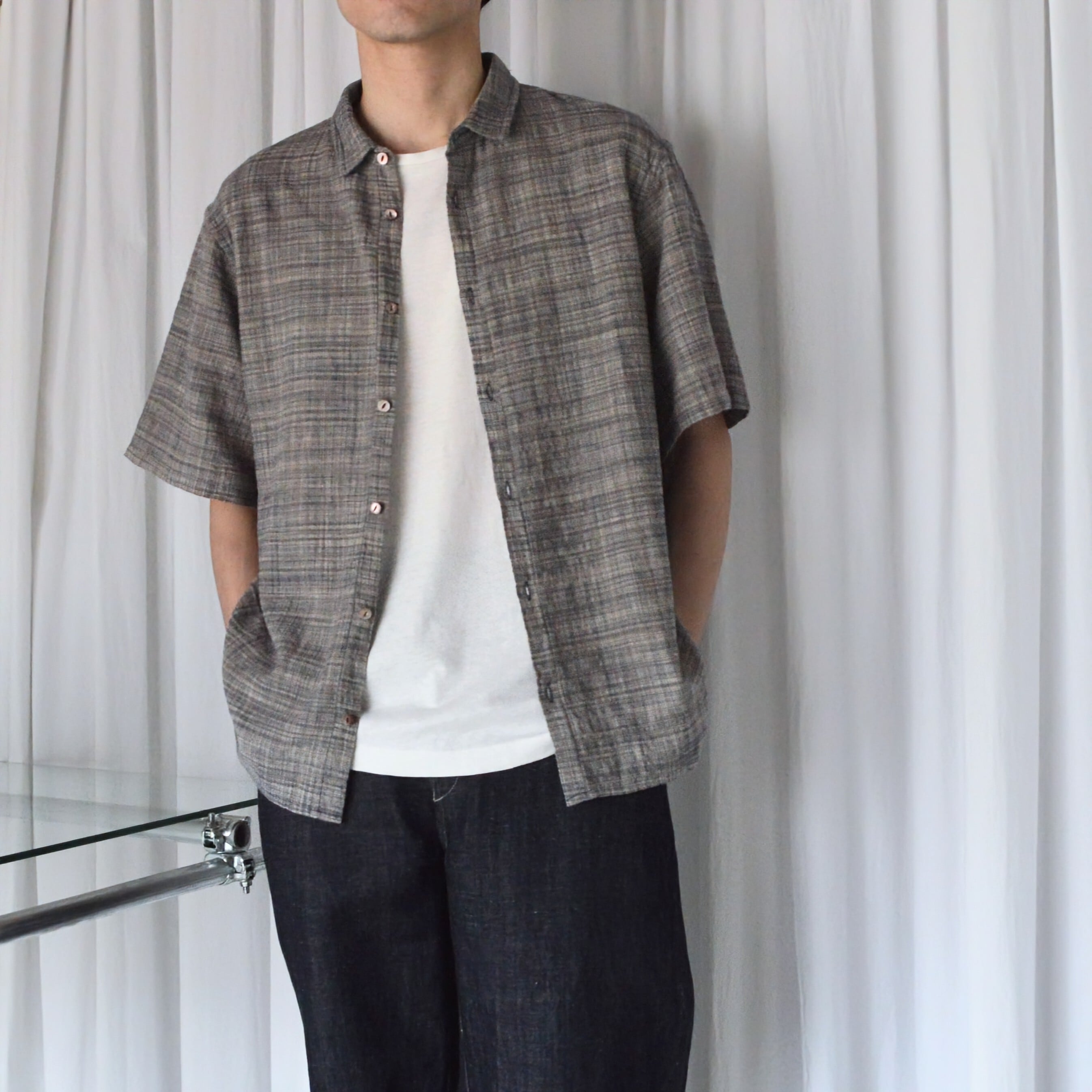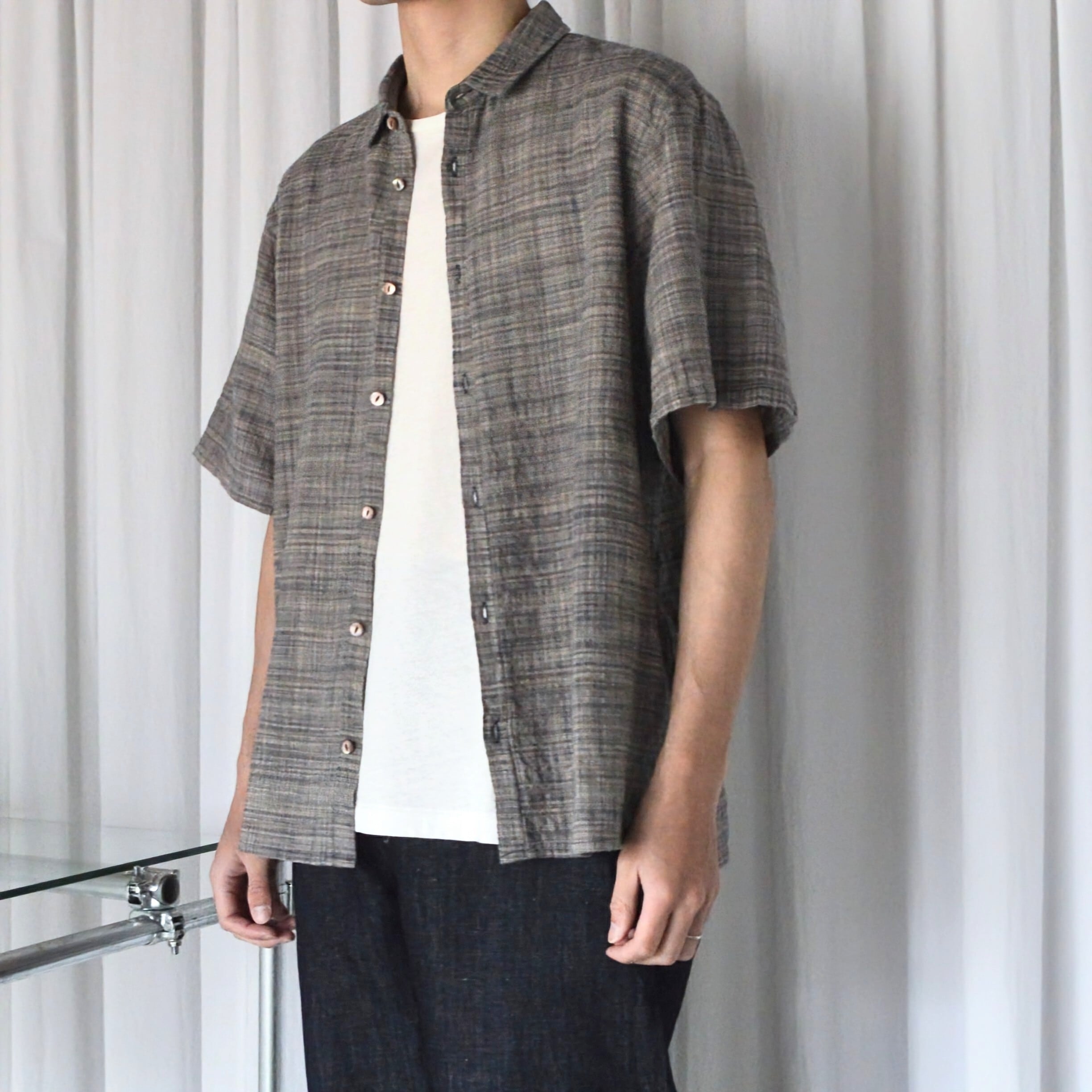 既存のファッション産業への疑問から、服づくりに携わるすべての人が健全に継続できるものづくりを目指し、独自の取り組みを行いながら衣服やそれにまつわる経済の循環を確立している稀有なブランド〈MITTAN〉のハーフスリーブシャツ。