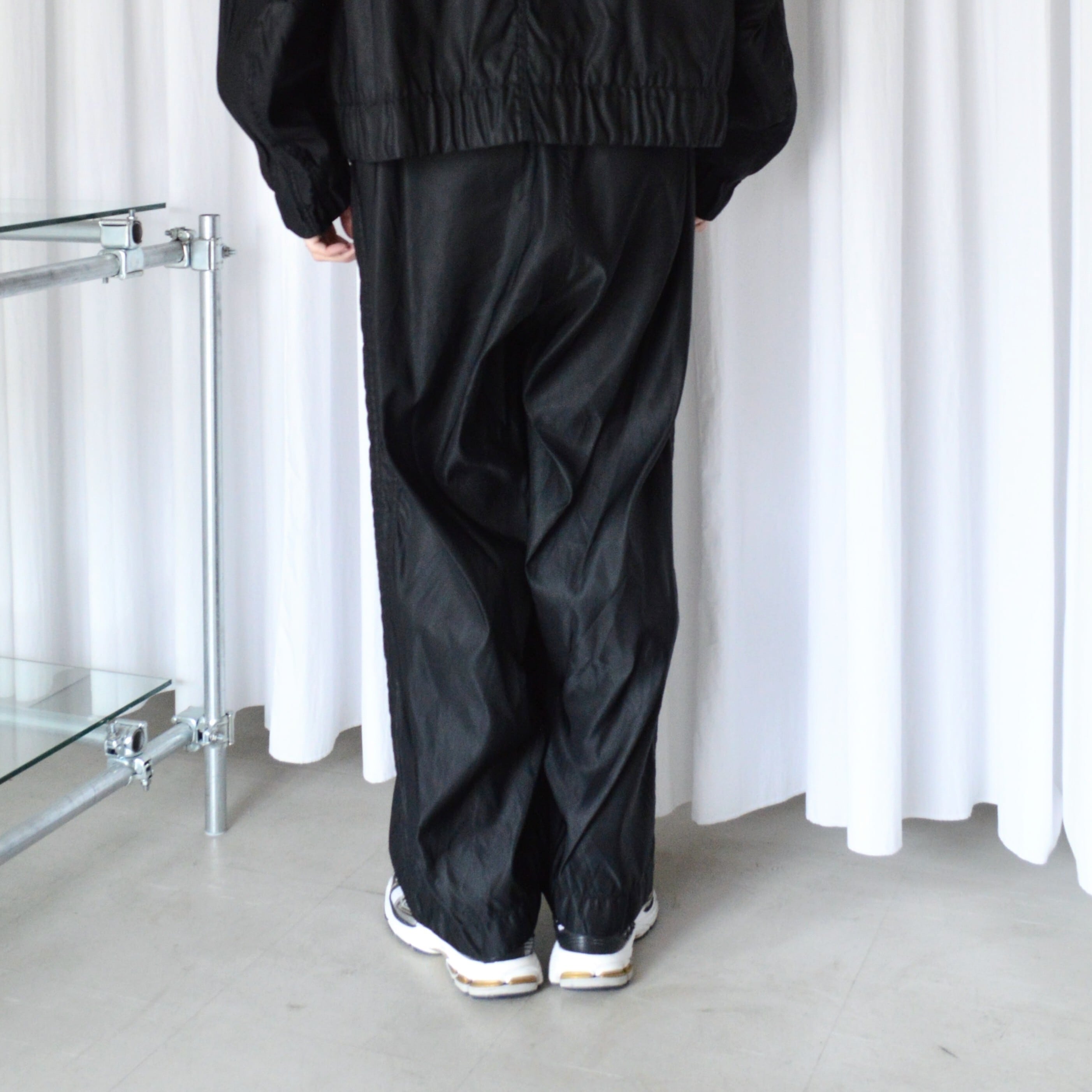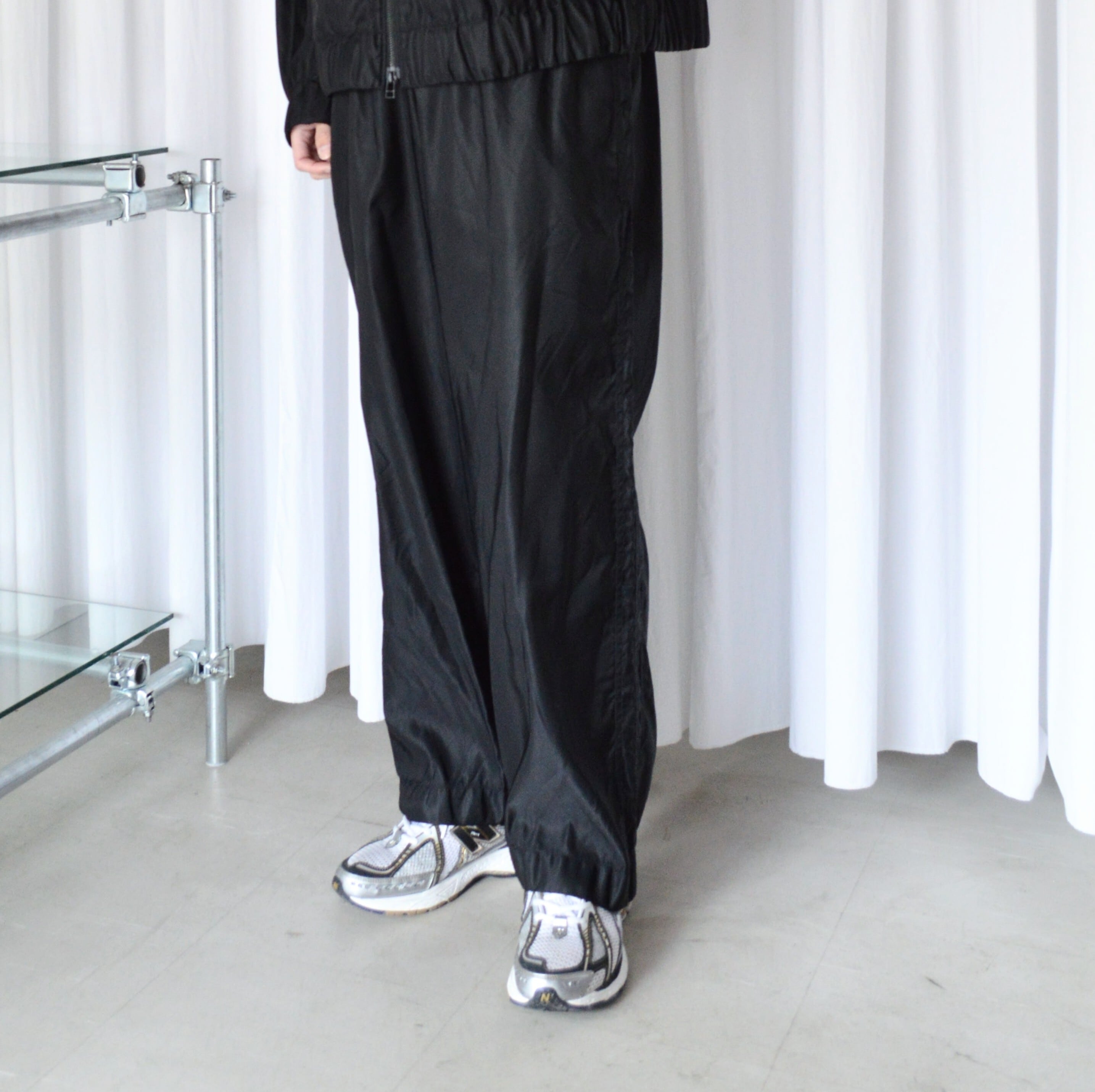 製品染めによる縮みを活かしたトラックパンツ